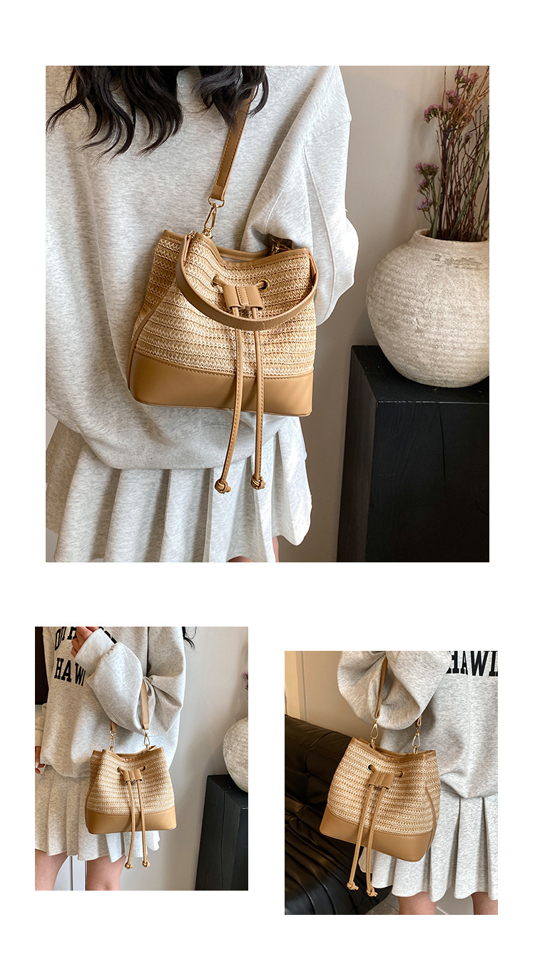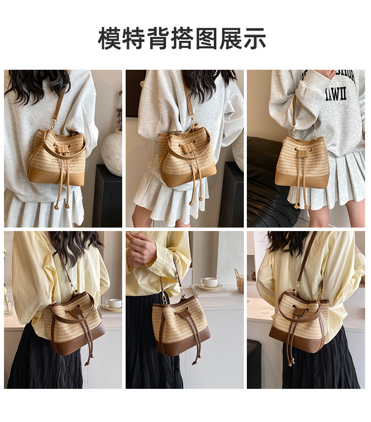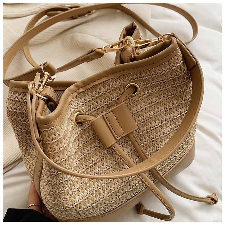 クロスボーダー 2025 新しいファッションポータブル織り女性のハイエンドテクスチャストローバッグショルダーメッセンジャーバッグカジュアルバケットバッグ