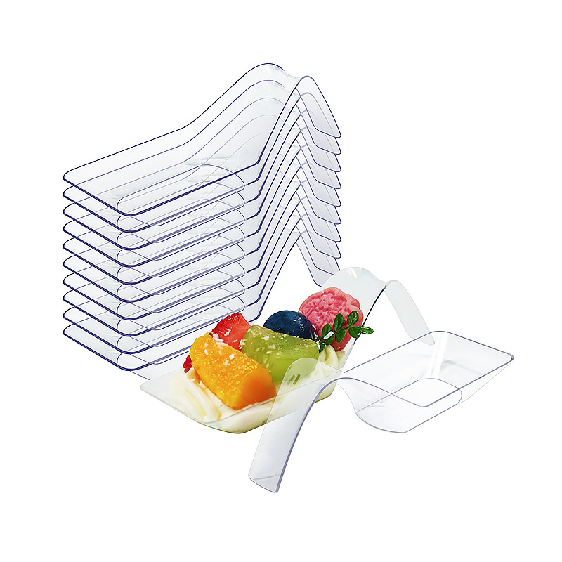 跨境爆款甜品碟一次性小碟子迷你开胃菜弯腰碟蛋糕碟茶歇碟高跟勺
