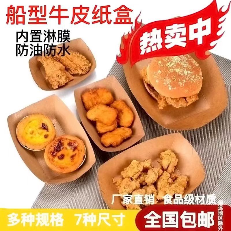 折りたたみ不要のクラフト紙ボートボックス、使い捨てオープンスナックフライドチキンボックス、揚げ串バーベキューフライドポテト包装弁当箱