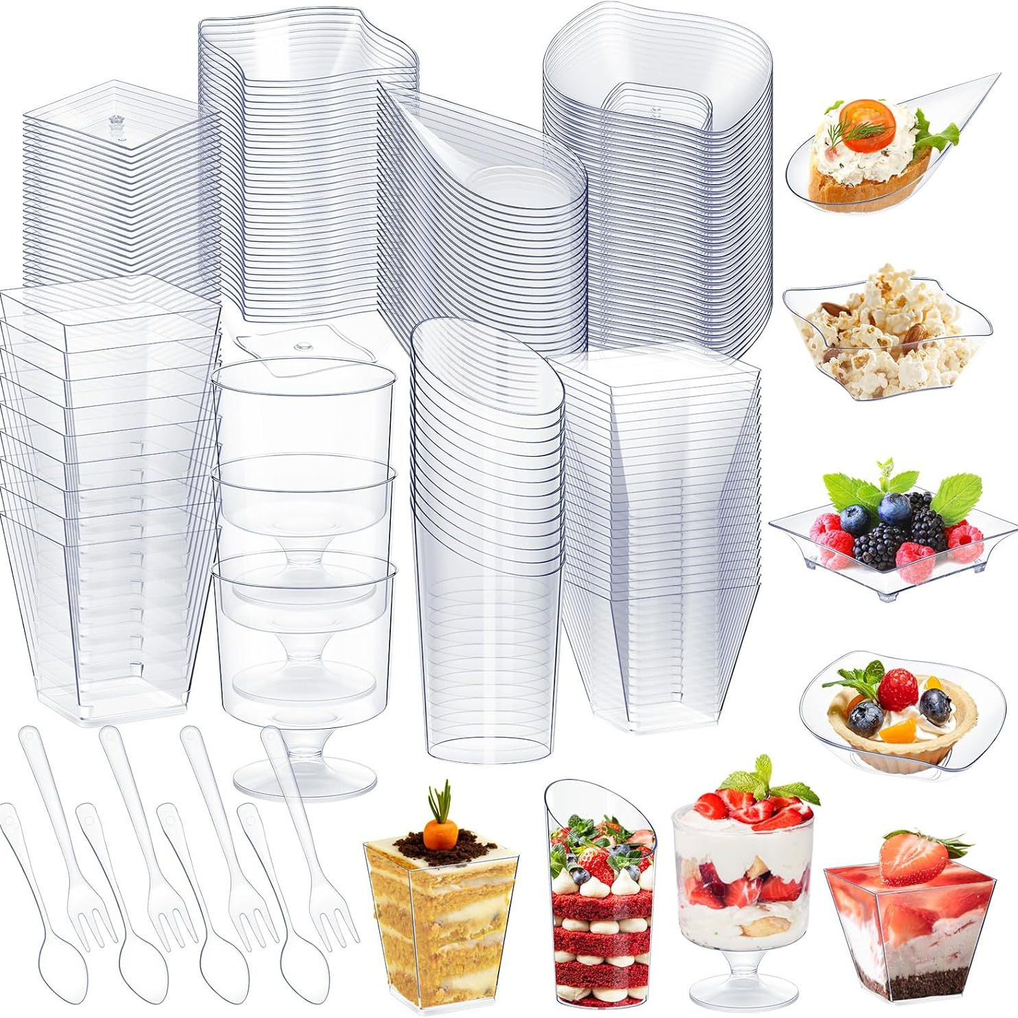 跨境慕斯蛋糕甜品斜口布丁果冻提拉米苏木糠一次性塑料杯碟碗组合
