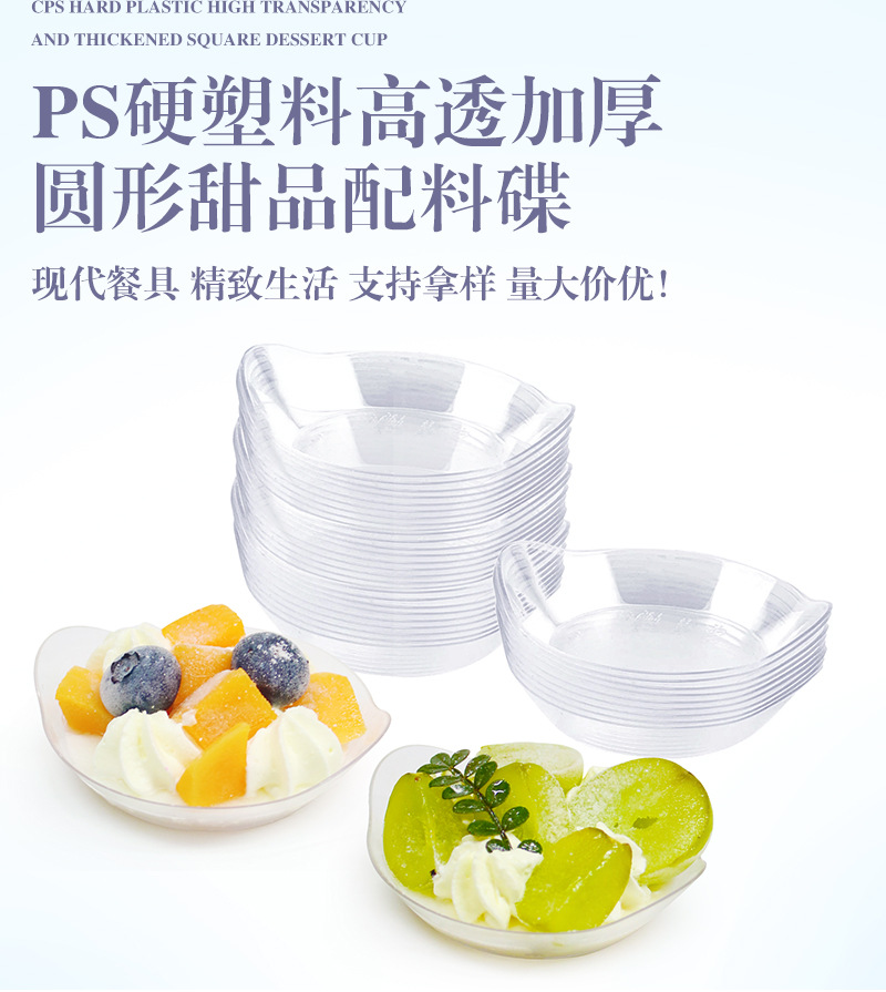 跨境亚马逊爆款一次性PS硬塑料加厚设计甜品酱料碟透明小吃小彩碟