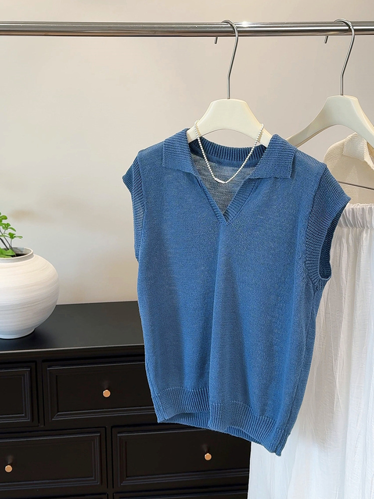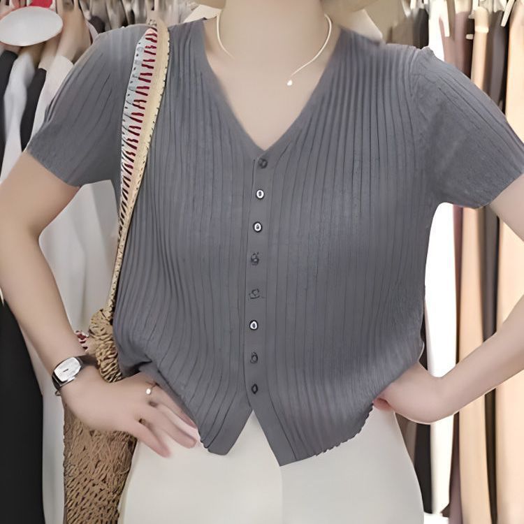 【メーカー直販】純色vネックがゆったりしていて、痩せた雰囲気のニットカーディガンtシャツ女性2025新型夏ファッション