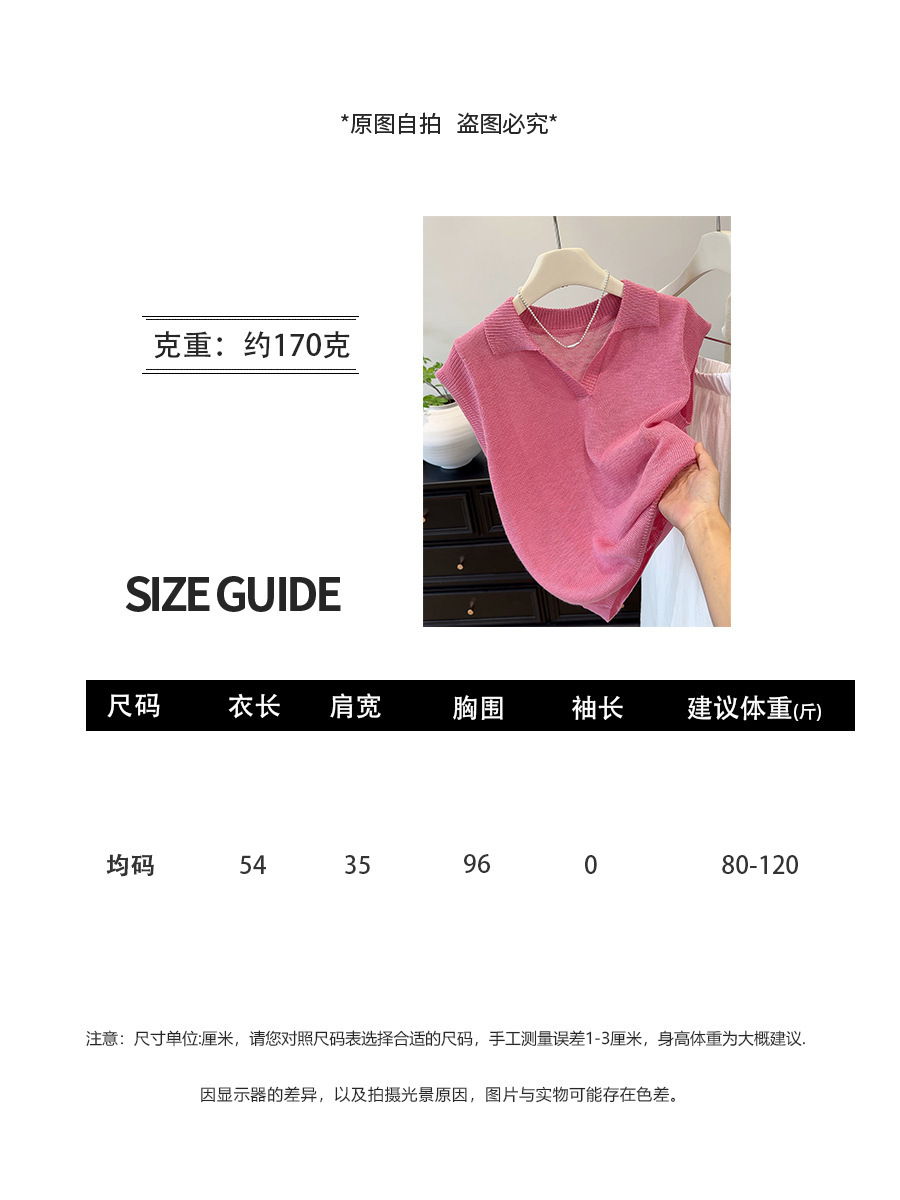 夏の女性向けの薄いポロカラーセーター、スリムな半袖、小柄な人向けの無地の万能ショートカーディガントップ