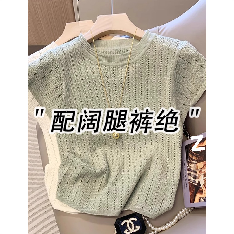 法式镂空圆领针织短袖T恤女2025夏季新款温柔上衣女士t恤短袖