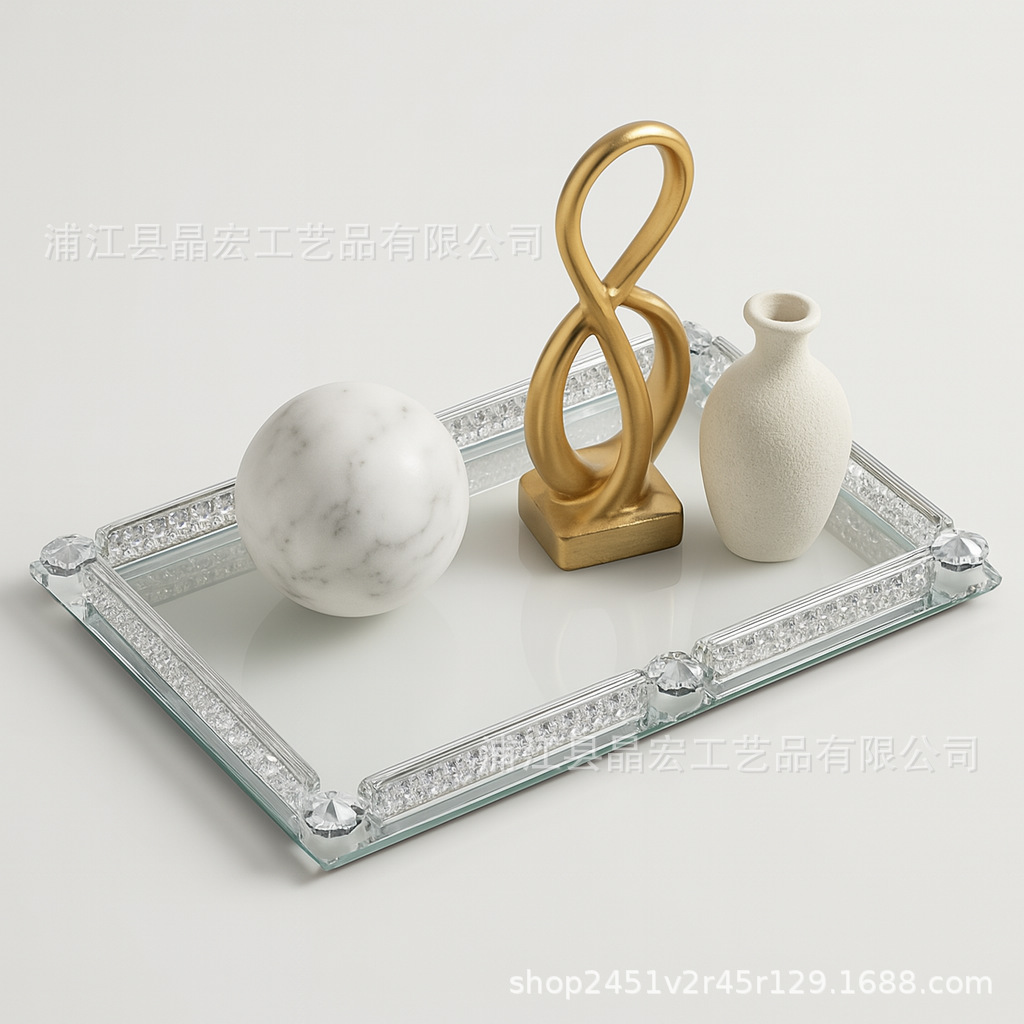 カスタマイズされた工場クロスボーダークリスタルトレイガラスディスプレイトレイ家の装飾装飾品ジュエリー香水収納トレイ卸売