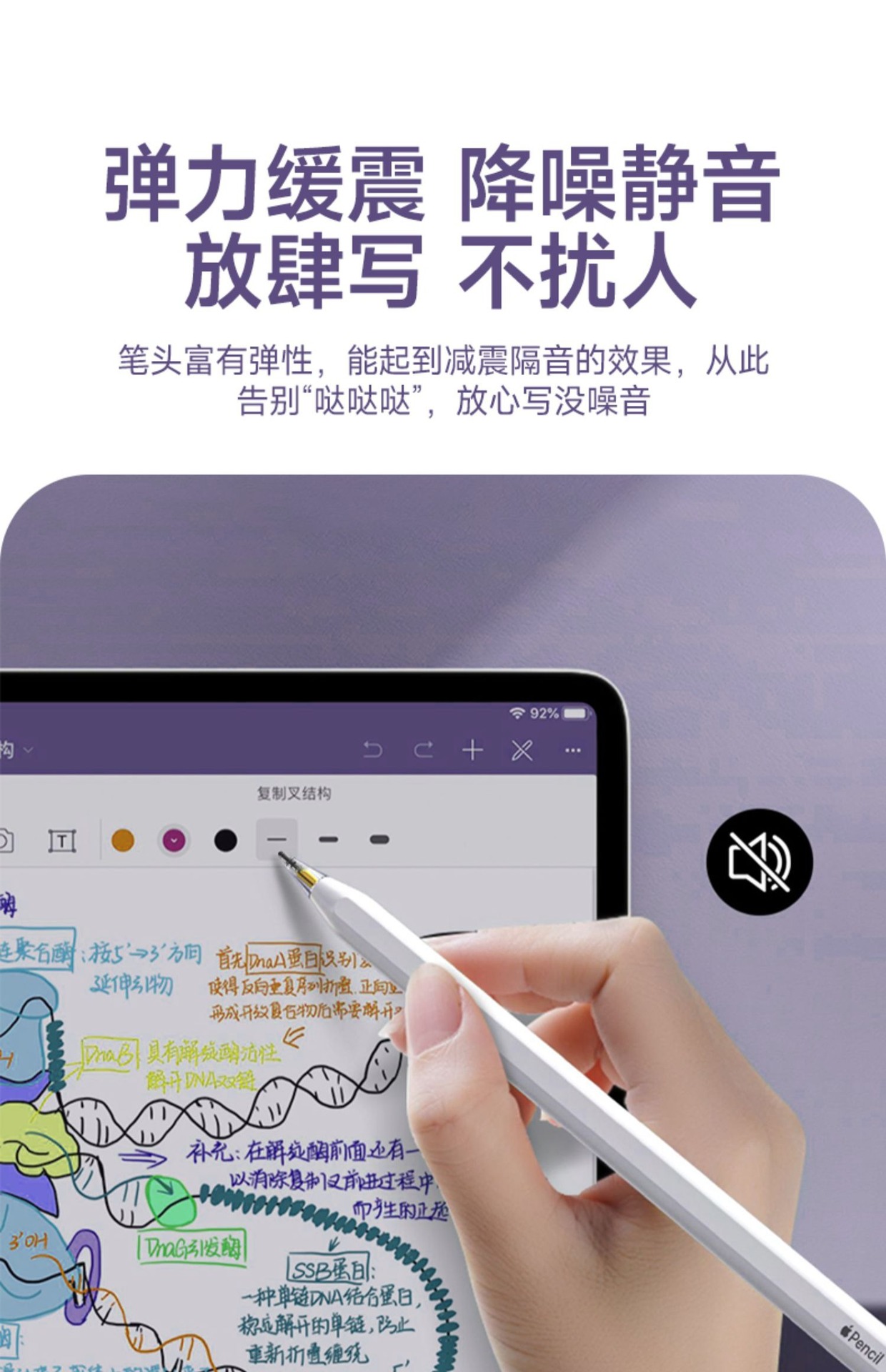 Apple Pencilに適しています。交換可能で取り外し可能なペン先、ペン先の減衰、静音ペン先、滑り止め、紙のようなフィルム。