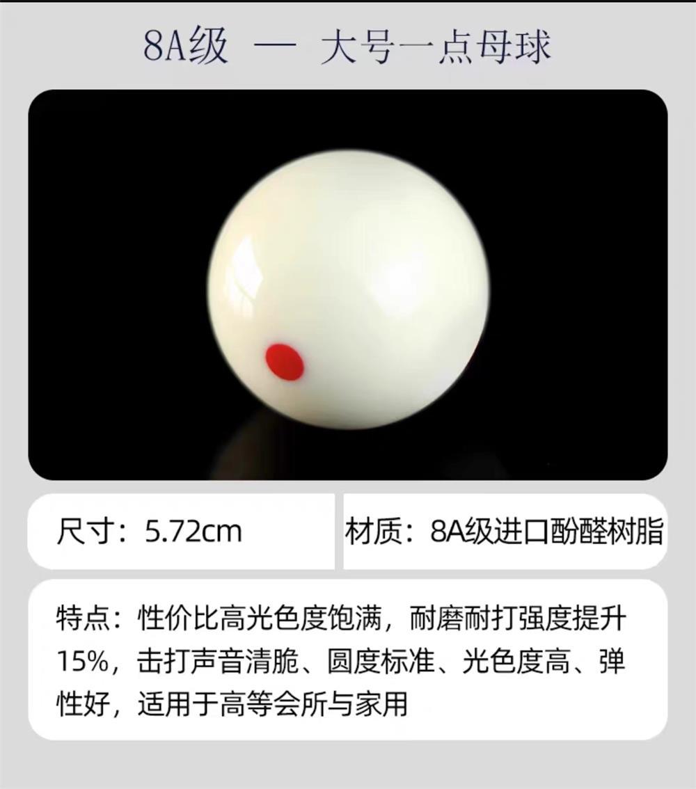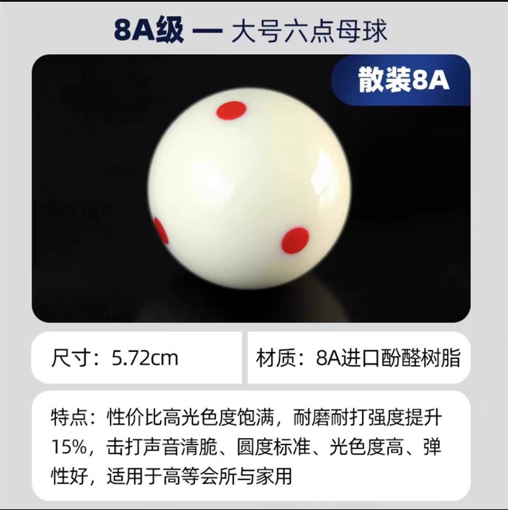 ビリヤード母球六時一点赤点黒八白色ビリヤード子水晶球5.72CM大球ビリヤード用品