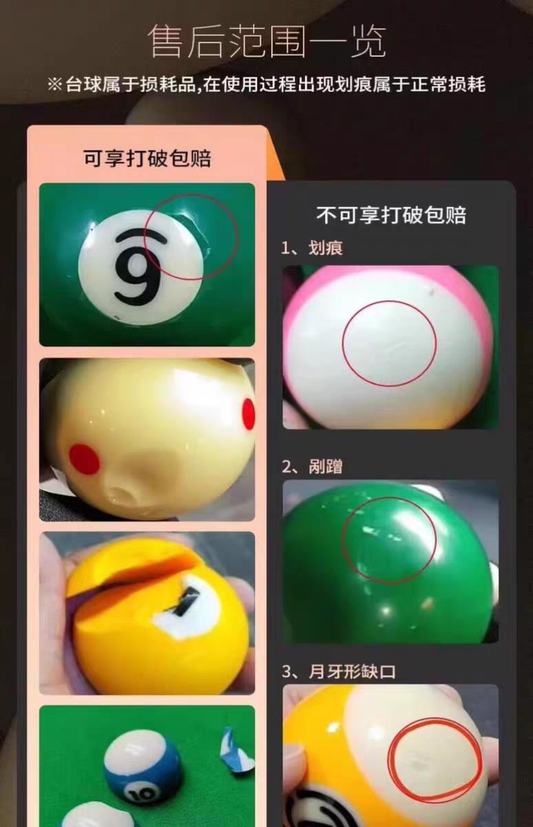魁岭台球白球母球六点红A级57.2mm2-1/4中八黑八美式USA Billiard