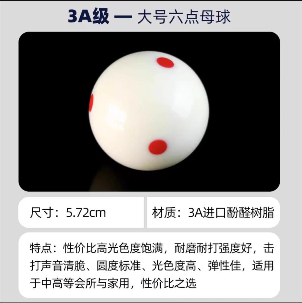 规格 16A台湾红六点 独立包装(1个),赛级韩标红六红点母球 独立包装(1个),奔霄酚醛树脂水晶球 独立包装(1个),黑金刚六红点母球 (1个)买三送一,3A六红点水晶球(1个)买三送一,8A红六点水晶球(1个)买三送一,8A一红点水晶球(1个)买三送一,新康黑金刚六红点母球一盒(16个),新康3A红六点母球一盒 (16个),新康8A一红点母球一盒 (16个),新康8A六红点母球一盒 (16个)