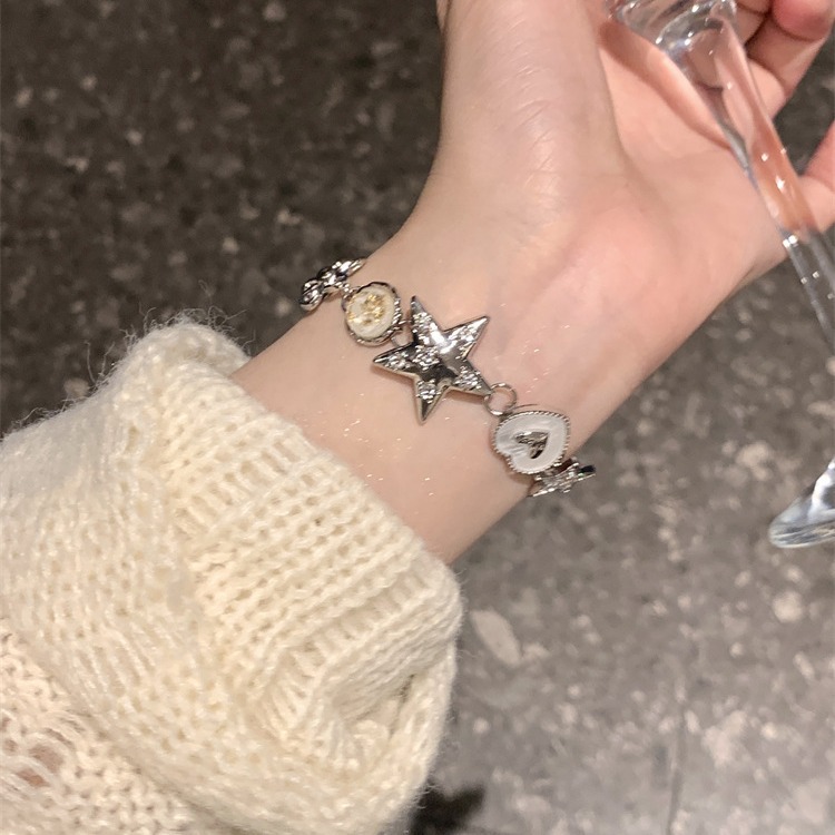 メタリックスターラブボタンヘビーデューティーブレスレット、ハイエンド、絶妙、多用途、甘いニッチ、軽い高級デザインアクセサリー