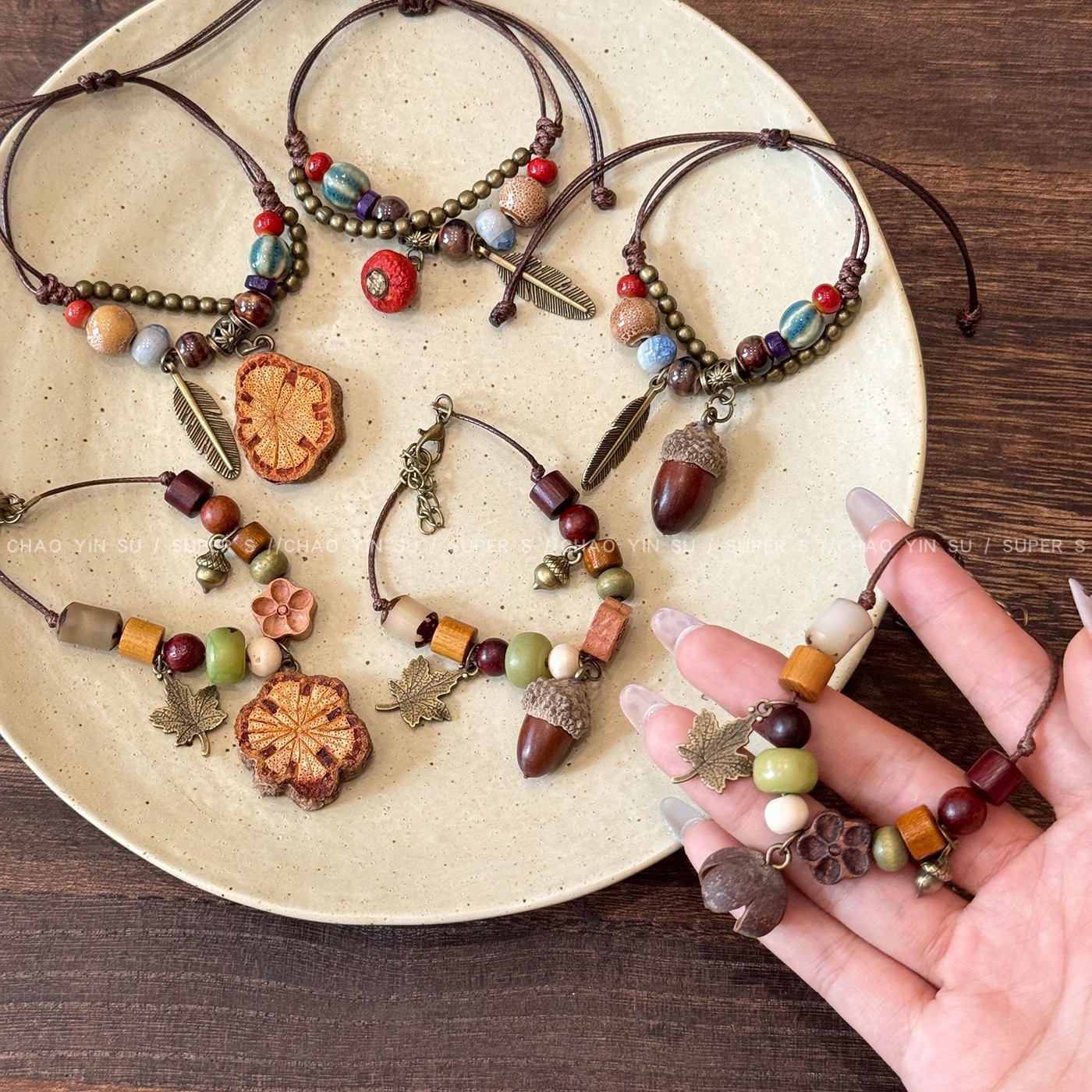新中式复古手工编织植物果实手链女森系民族风独特设计百搭手饰品