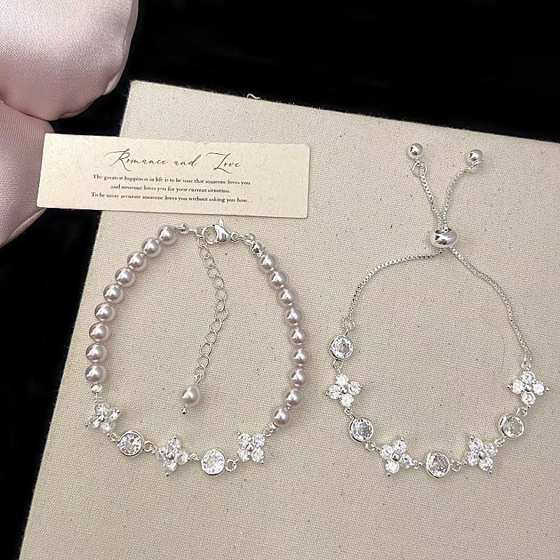 微镶锆石四叶花曼塔玫瑰施家珍珠手链叠戴可抽拉精致百搭气质手饰