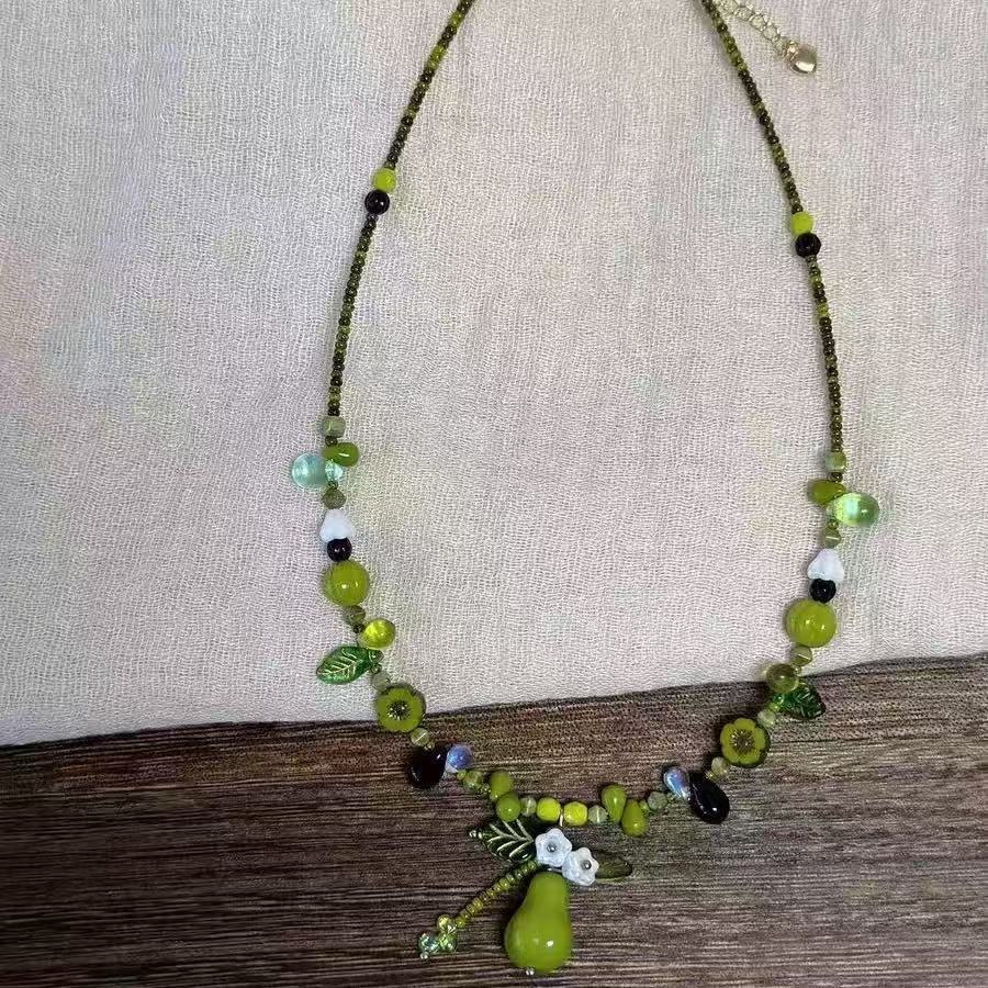 【青梨と春芽】グリーンビーズ自然植物シリーズ青梨ブレスレット小衆復古チェコビーズ手串