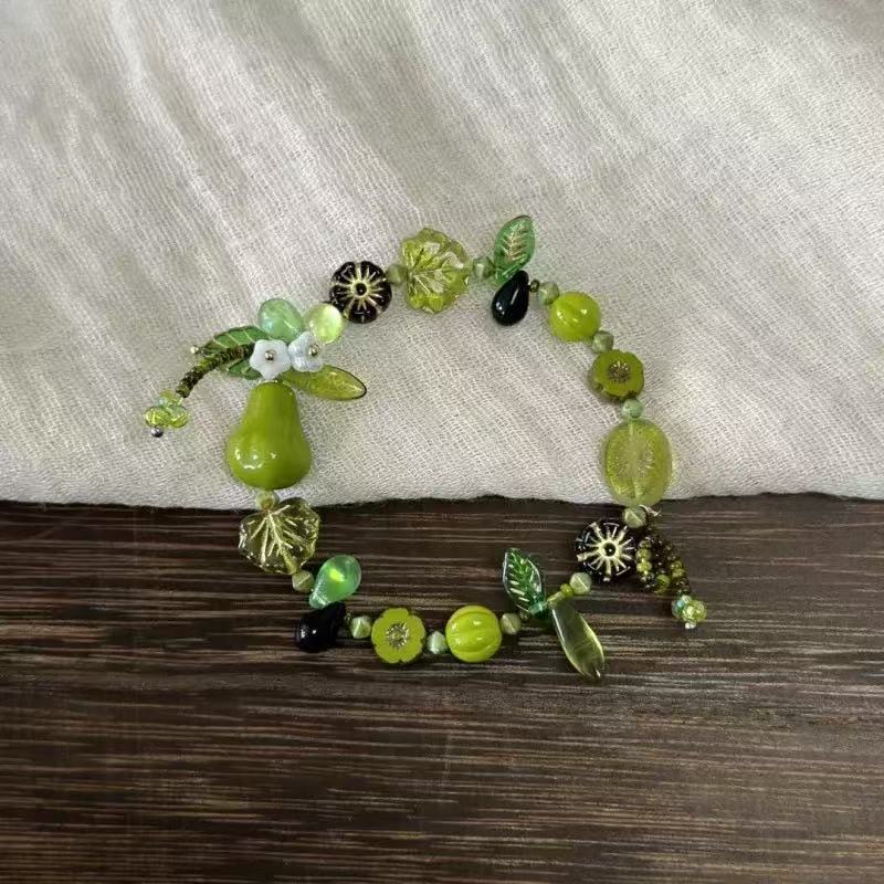 「青梨与春芽」绿色串珠自然植物系手链小众复古高级感手串手饰潮