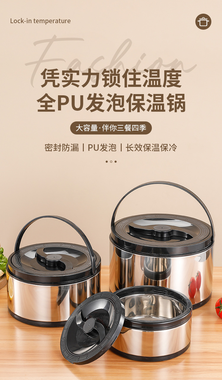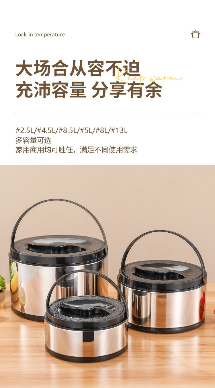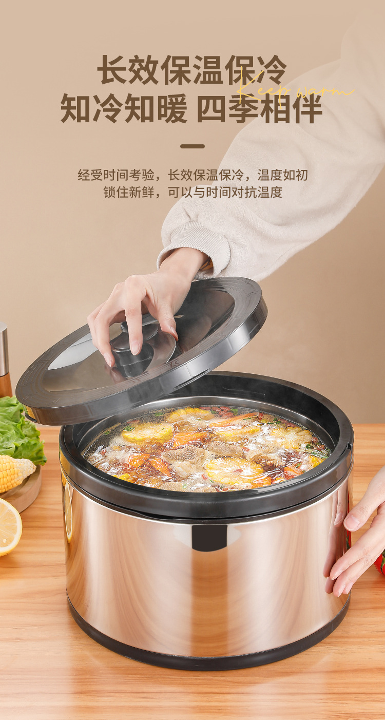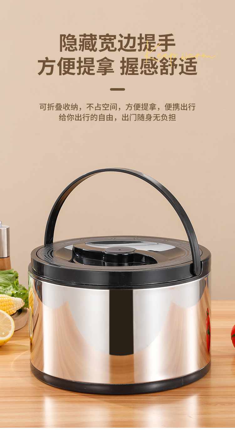 跨境不锈钢大容量商用带饭保温桶提锅饭桶冰桶便携三件套装保温壶