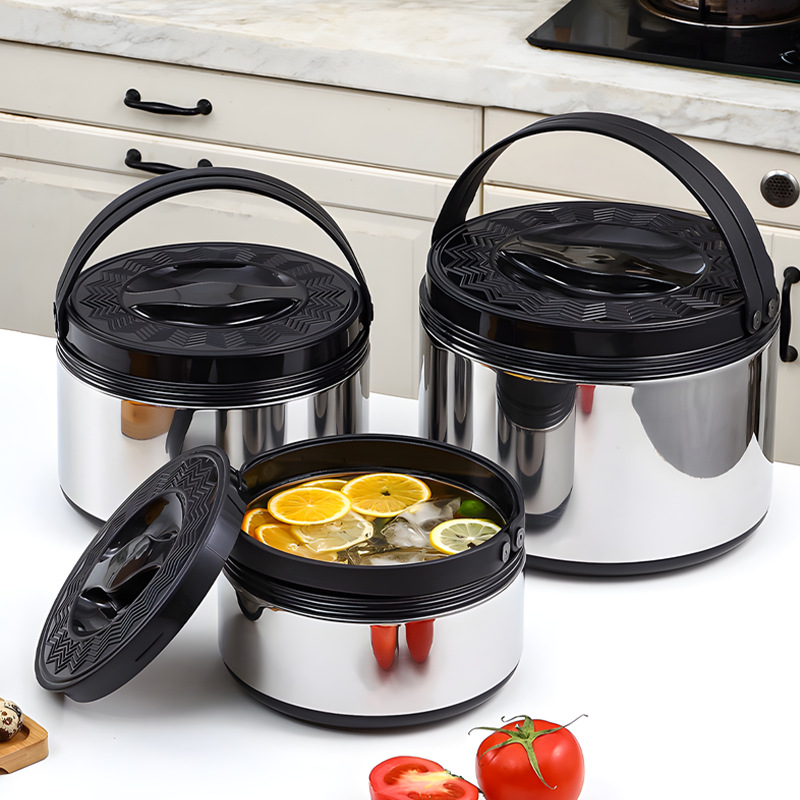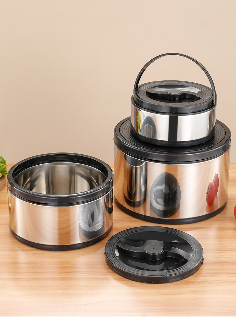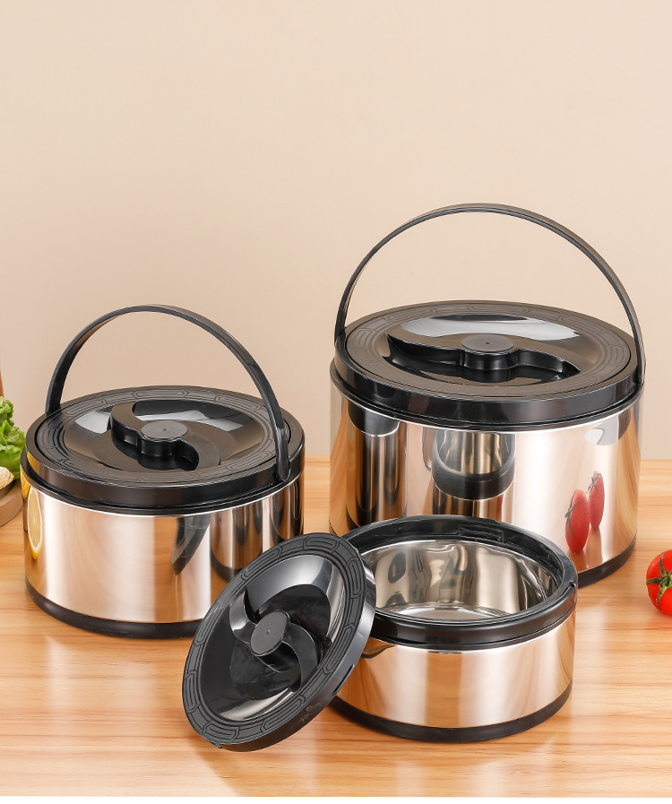 外国貿易ステンレス鋼二層ポータブル断熱ポット大容量断熱ランチボックス断熱バケツ家庭用鮮度保持ポット 3 点セット