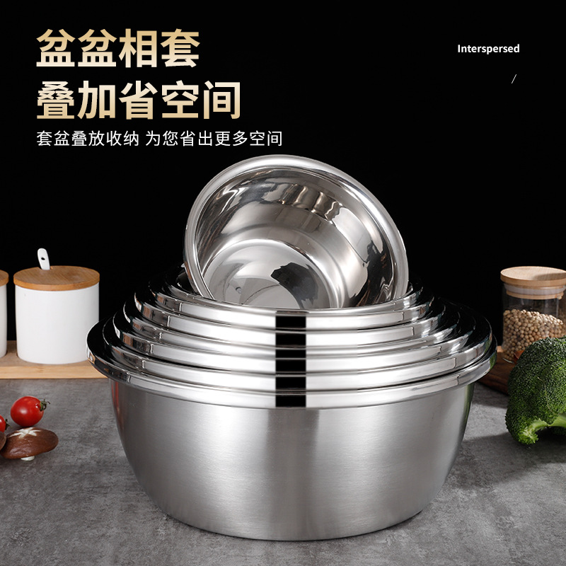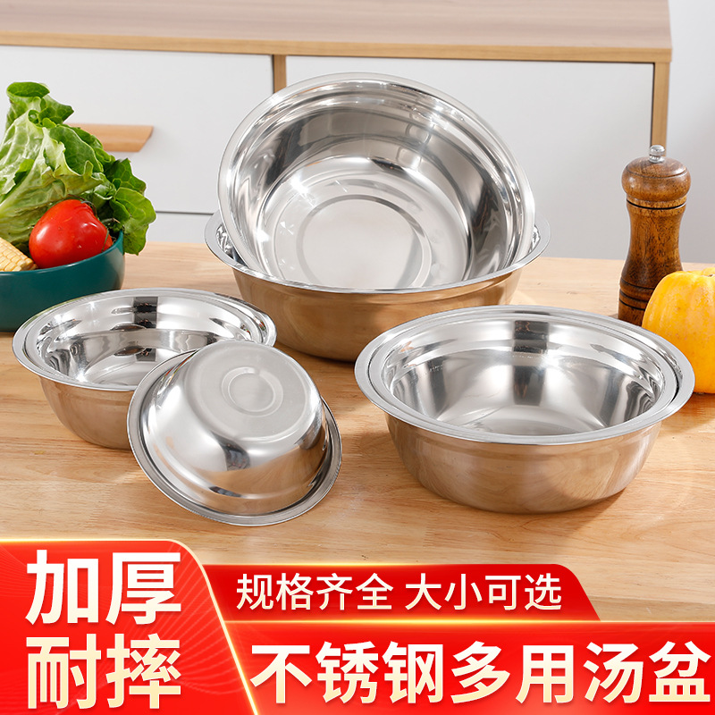 厚みのあるステンレス鋼の洗面器、丸い洗面器、家庭用キッチン洗面器、スープ洗面器、ステンレス鋼の野菜洗面器、卵洗面器、麺洗面器、多目的洗面器