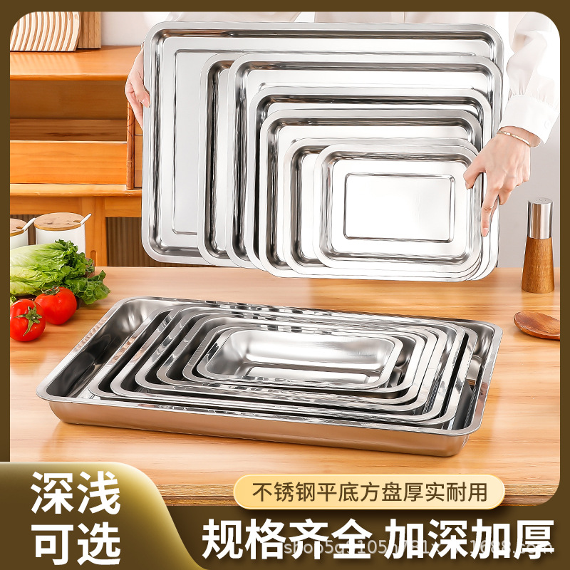 ステンレス製の四角い皿、蒸し飯、バーベキュー、深皿、浅皿、平底トレイ、ホテル、レストラン、長方形の食器