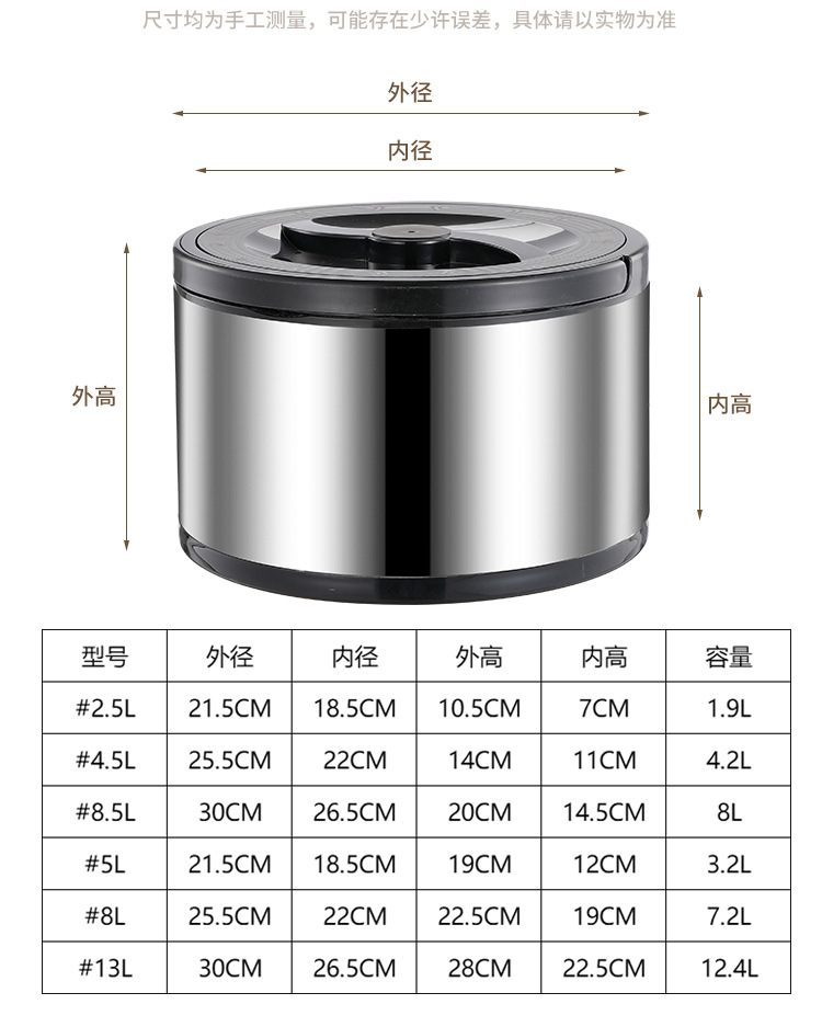 规格 2.5L+4.5L+8.5L【三件套】,5L+8L+13L【三件套】,2.5L【单个装】,4.5L【单个装】,8.5L【单个装】,5L【单个装】,8L【单个装】,13L【单个装】
