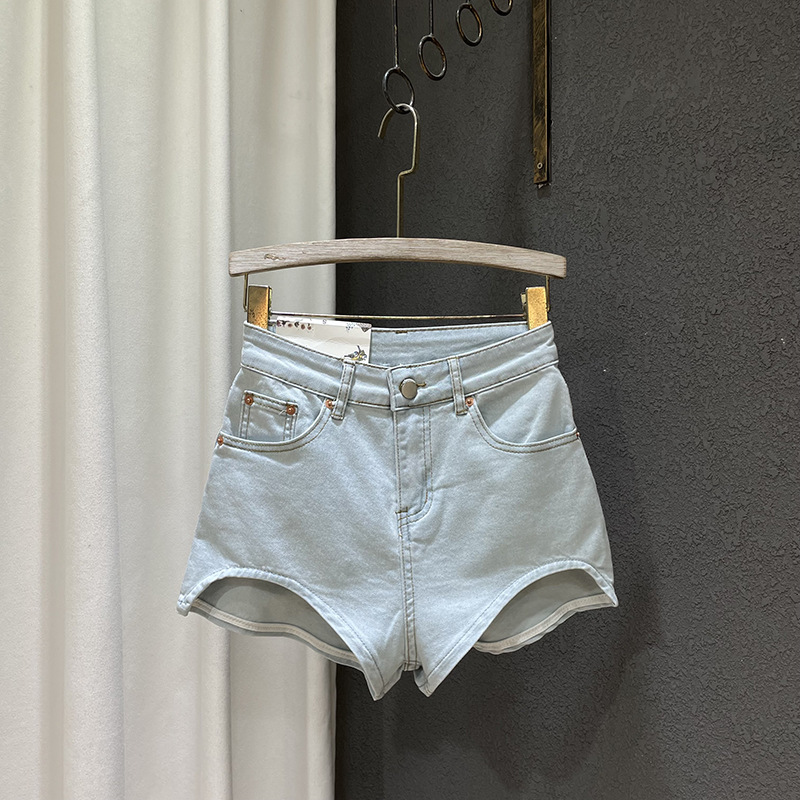 2025年夏の新作ファッション、スリムで多用途、ハイウエスト、タイトフィット、ウォッシュドストレッチワイドレッグデニムショートパンツ、女性用ホットパンツ、薄手