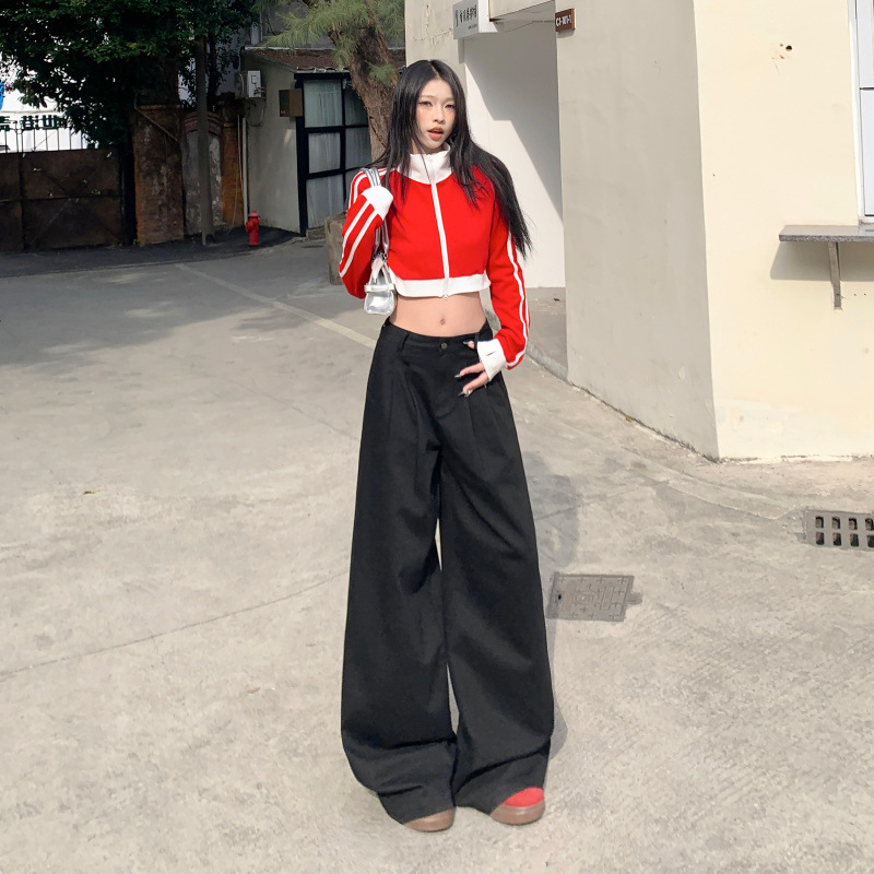 2025年の春の新型の狭い版の広腿のズボンの女性の小さい背のデザイン感のアイロンをかけるジーパンのまっすぐな筒はやせているズボンを現します。