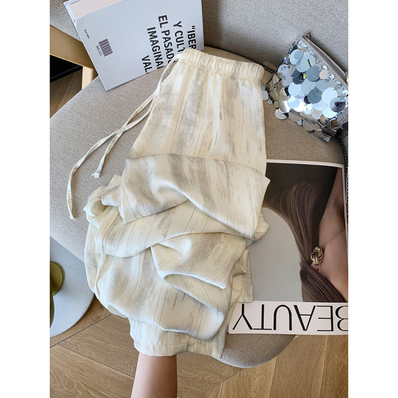水墨画のストライプの氷の天糸のサテンの酢酸の山本の広腿のズボンの女性の夏のまっすぐな筒は地面を引きずって感じます汚いカジュアルなズボン