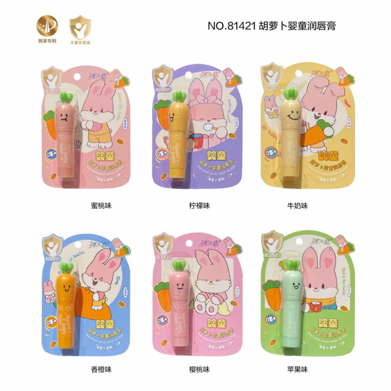 2025 アイスラブニンジン子供用リップクリーム漫画紙リップクリームフルーツフレーバーホワイトニングさまざまなオプション