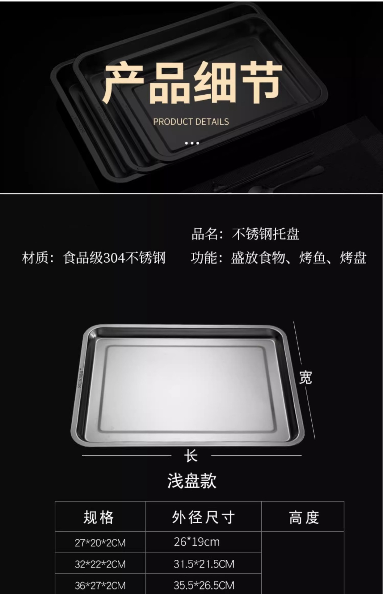 食品グレード 304 ステンレス鋼角プレート増粘蒸しライスプレート商業長方形ディナープレート食堂皿ディープトレイ
