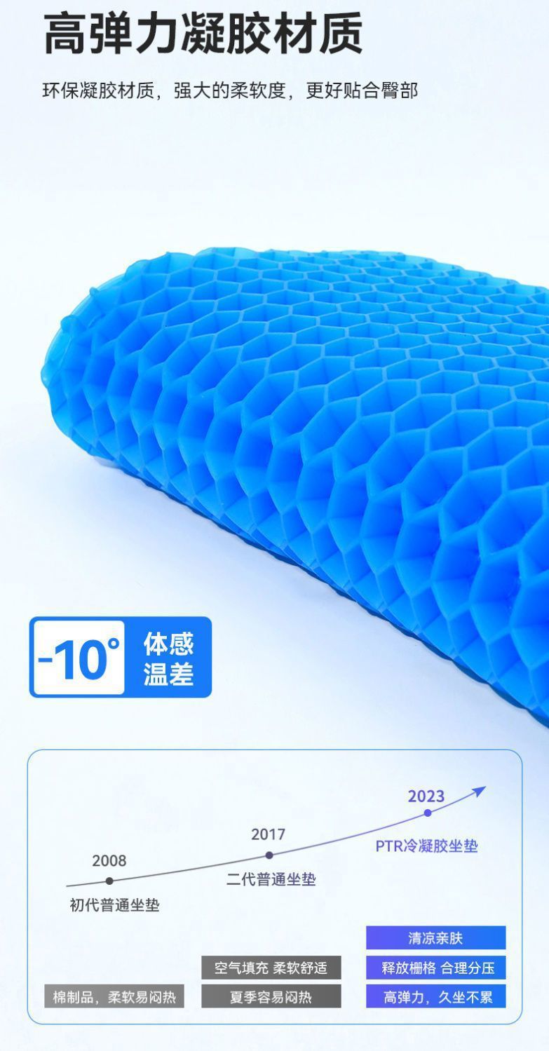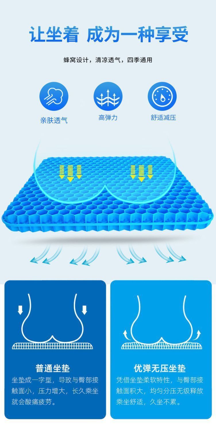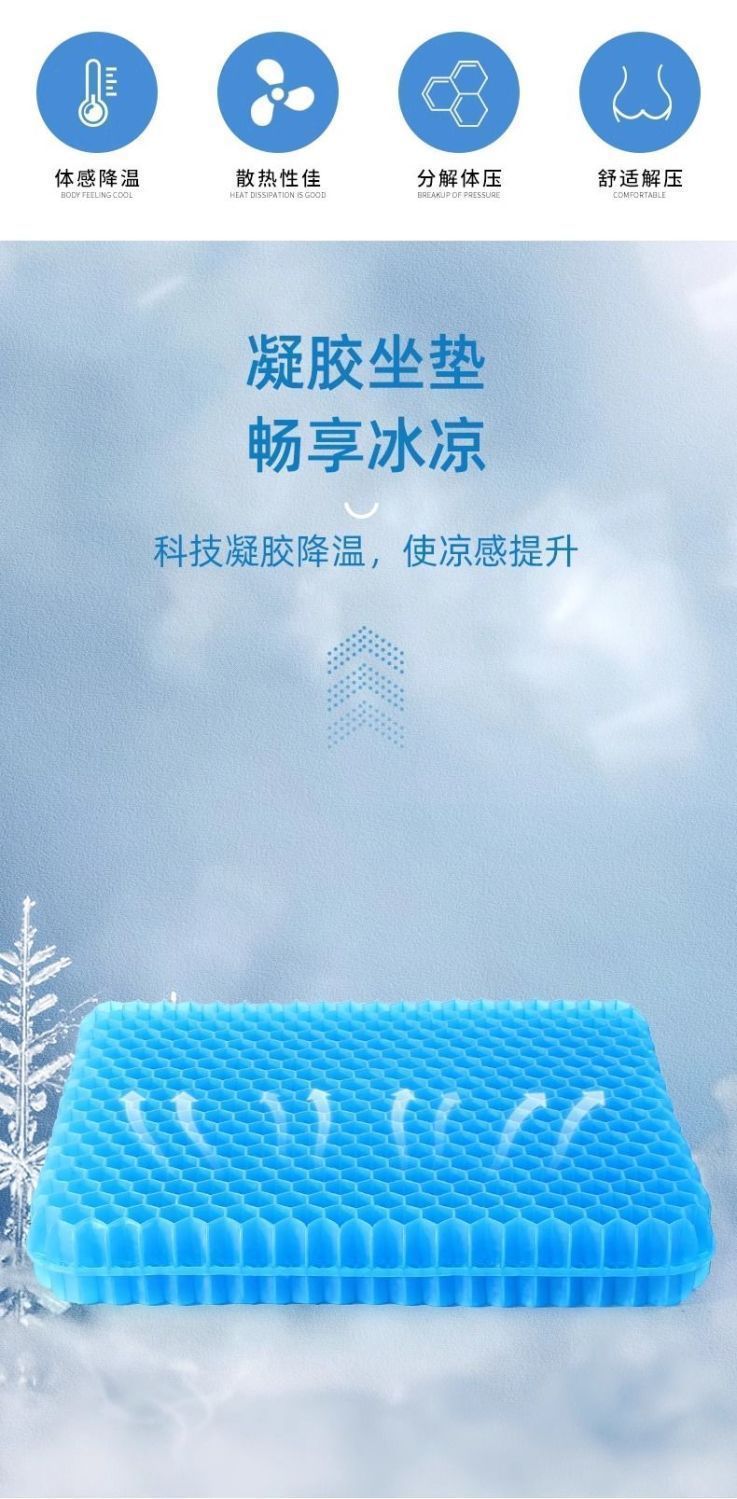 クッション、お尻クッション、アイスパッド、夏用極厚冷却パッド、ハニカムジェルカーシートクッション、オフィス通気性チェアクッション、オーブン