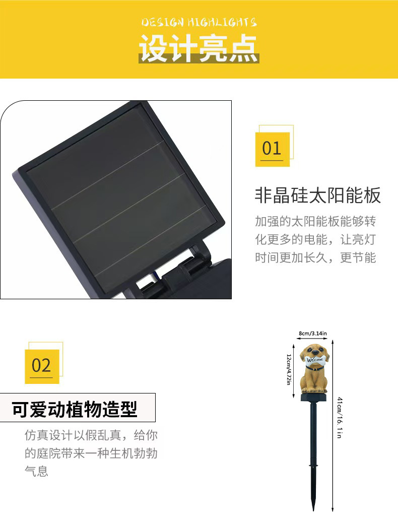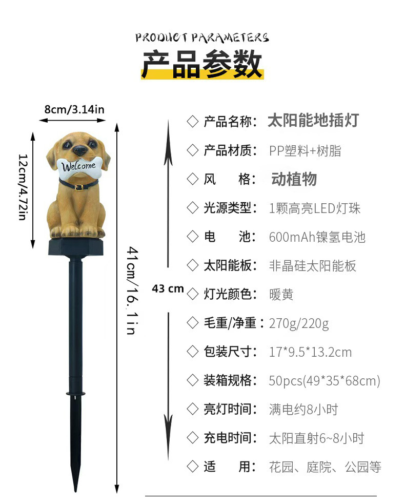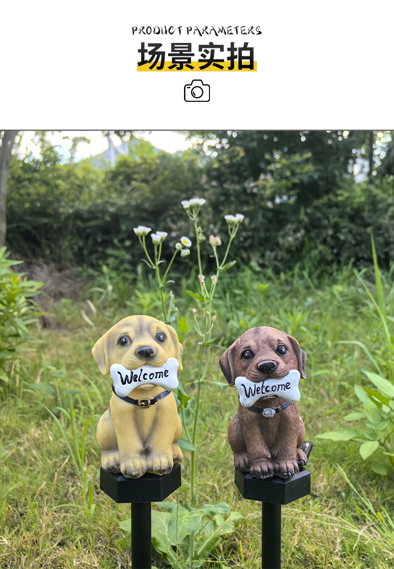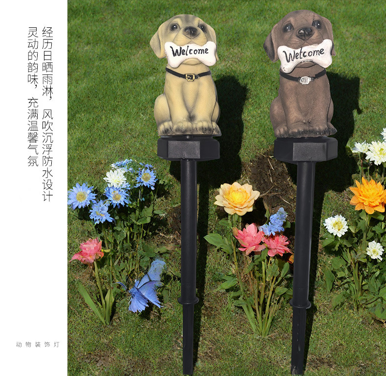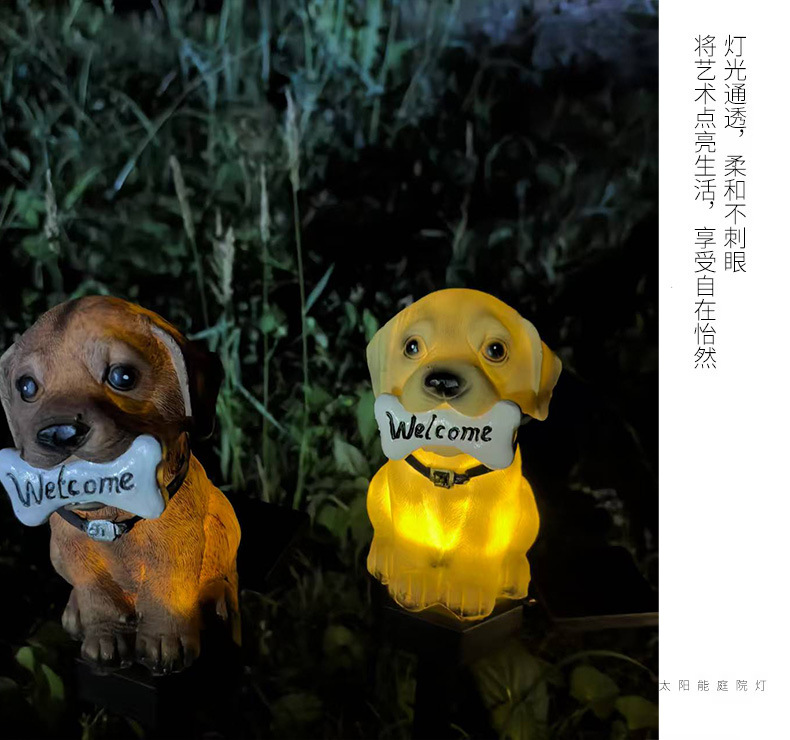 ソーラー式地面設置樹脂芝生ランプ、雰囲気装飾用地面設置ランプ、越境新商品、子犬型芝生ランプ、庭園用