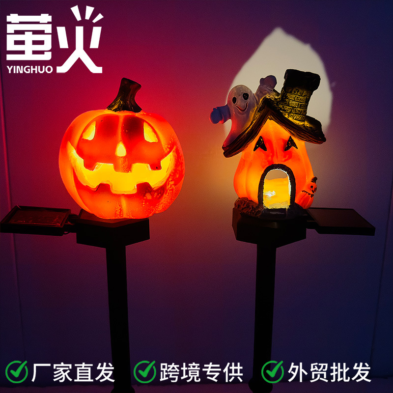 跨境太阳能地插灯万圣节氛围装饰大南瓜幽灵鬼节树脂草坪灯南瓜灯
