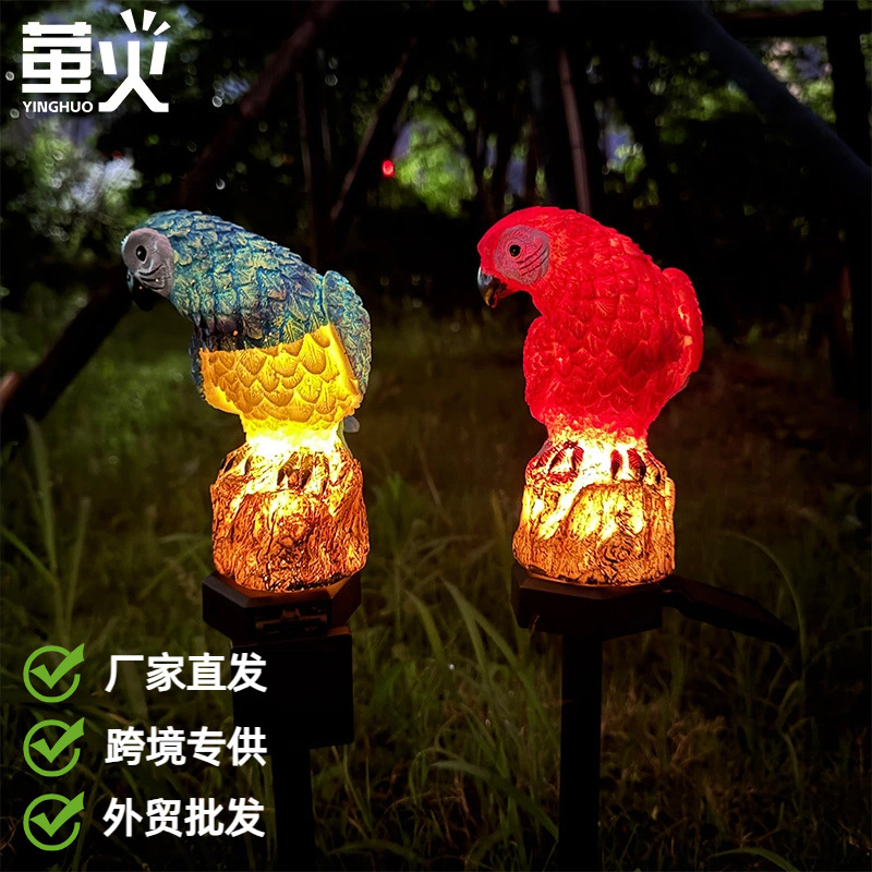 ソーラーアースプラグライト樹脂オウム芝生ライト中庭装飾ナイトライト屋外景観ライトクロスボーダー発光LED