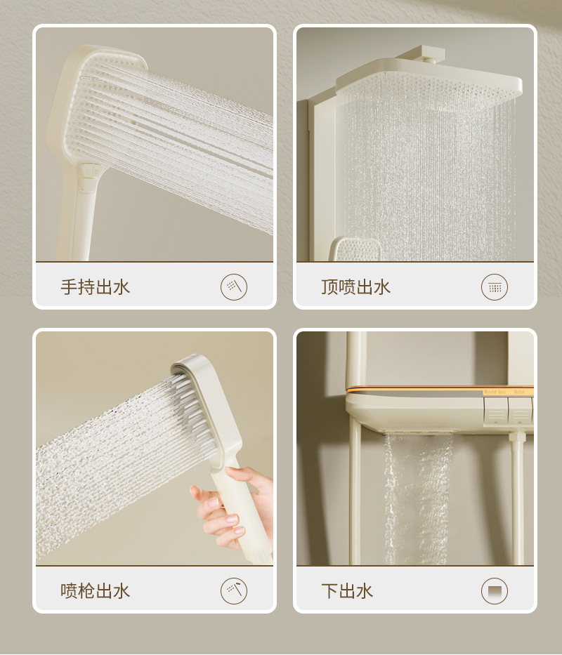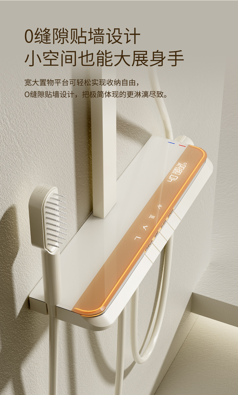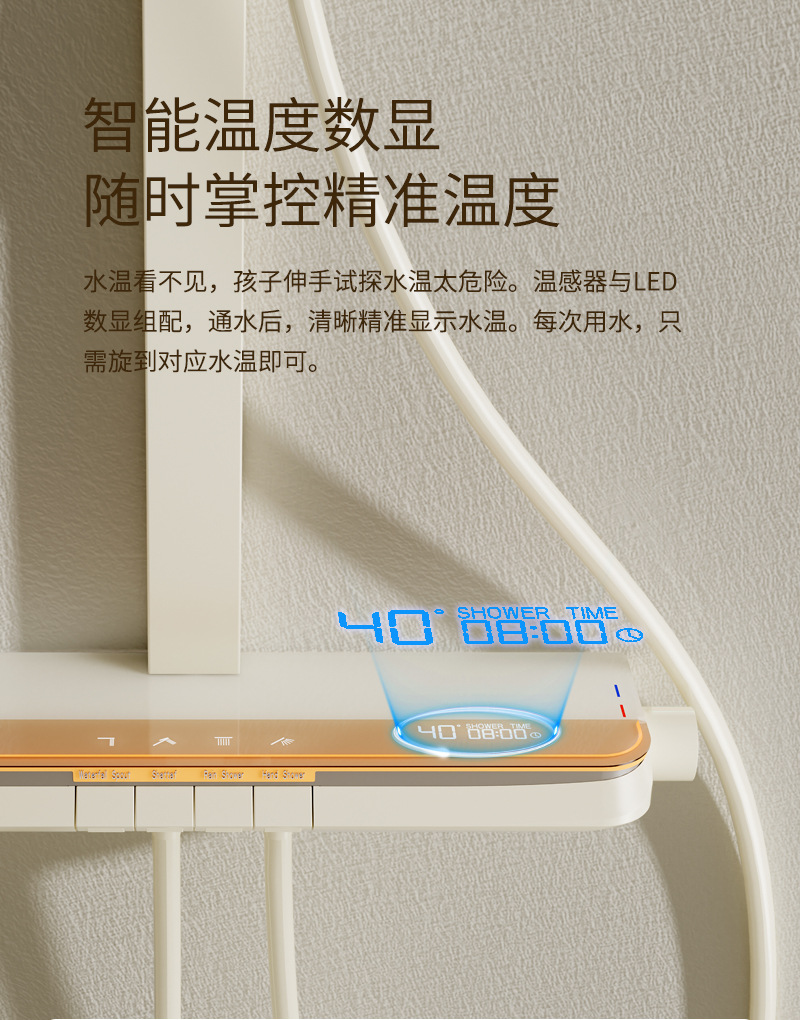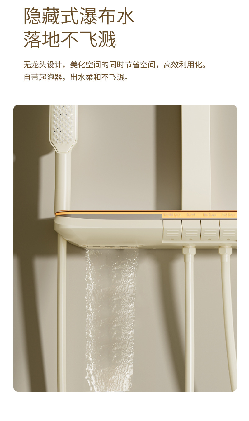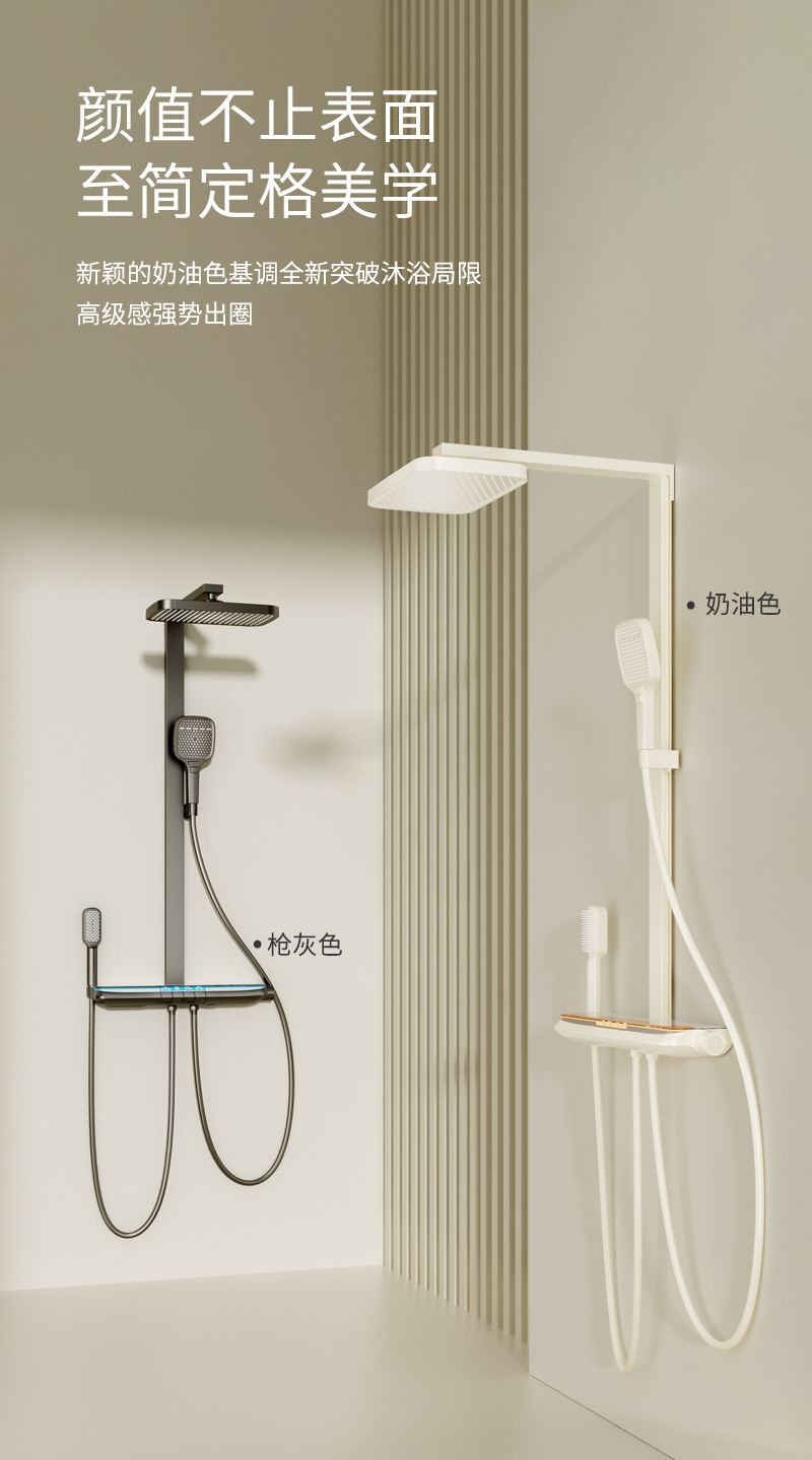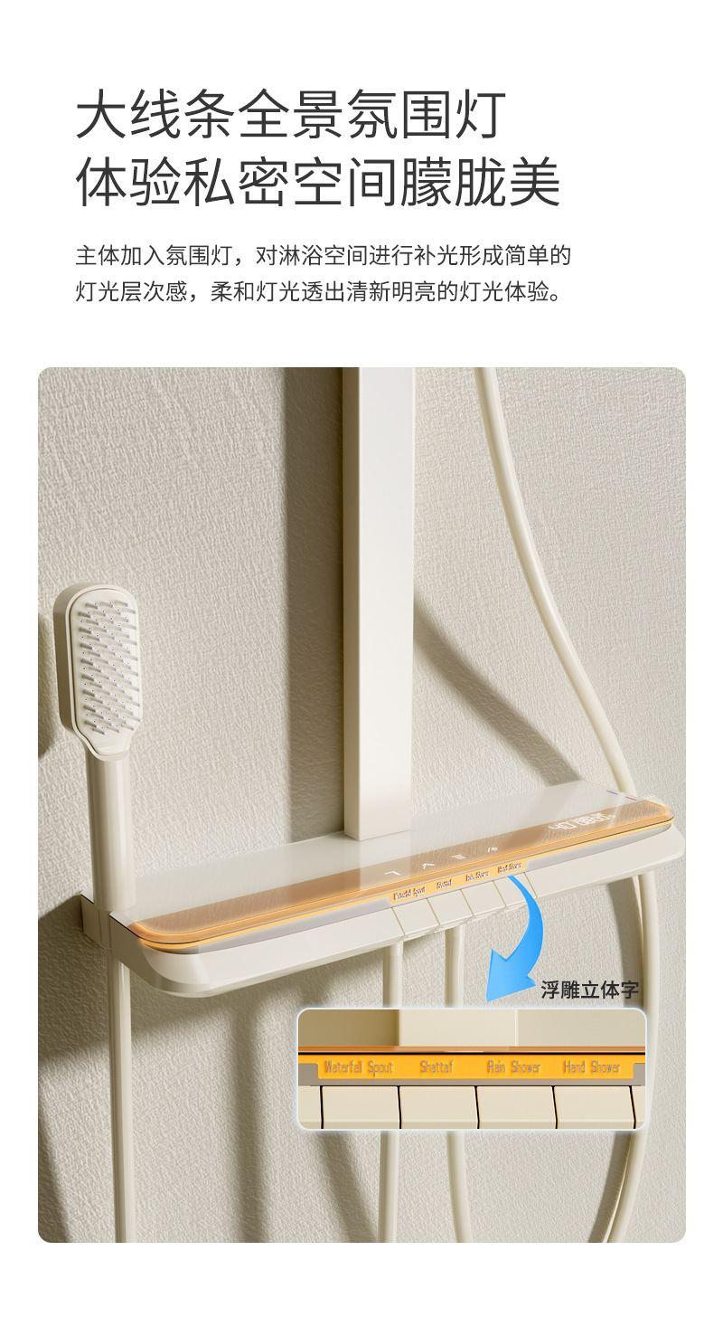 丽雅S9高端智能花洒奶油色淋浴花洒套装简约氛围灯数显大置物花洒