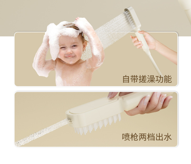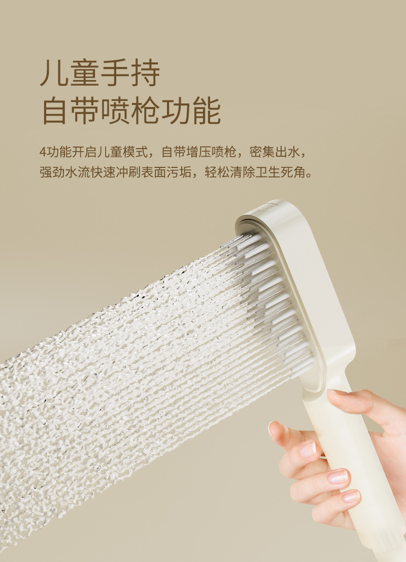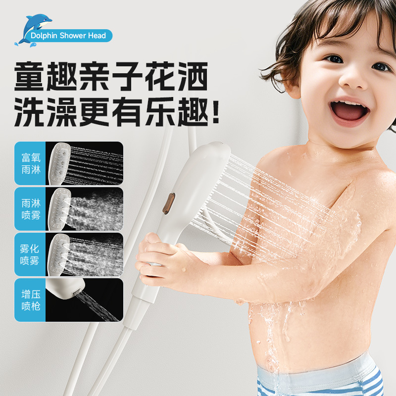丽雅海豚儿童微压花洒硅胶软刷亲子家用花洒奶白柔和带喷枪花洒