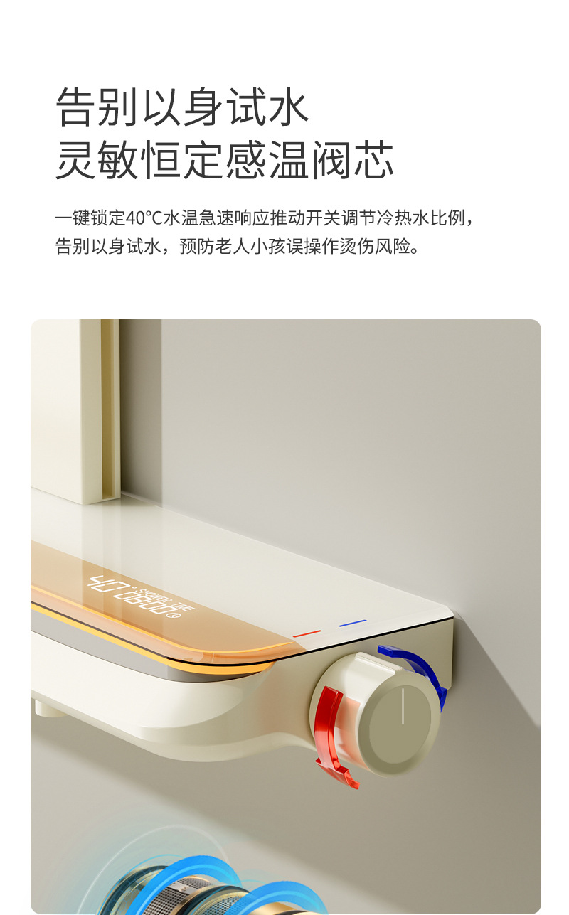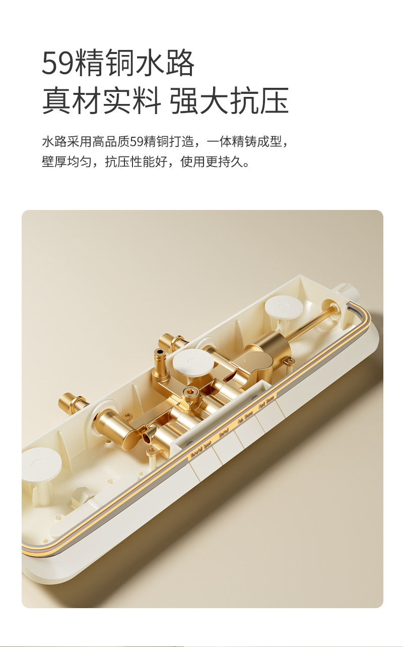 奶油风智能恒温花洒 防堵塞花洒淋雨头喷头