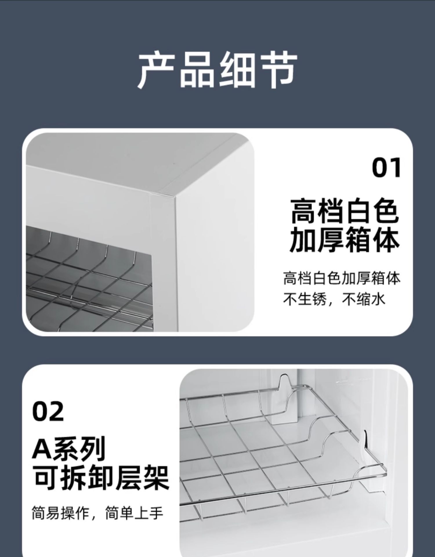 10L熱風循環+紫外線殺菌小型ホワイトボックス,24L熱風循環+紫外線殺菌、二重構造の白箱,48L熱風循環+紫外線殺菌、二重構造の白箱,158E シングルドア熱風乾燥および消毒 82.5cm タッチスクリーンホワイトボックス,280E シングルドア熱風乾燥および消毒 124.5cm タッチスクリーンホワイトボックス,380E シングルドアタッチスクリーン熱風乾燥および消毒 150.5cm タッチスクリーンホワイトボックス,78A シングルドア加熱および消毒独立した 62cm タッチスクリーンホワイトボックス,138A シングルドア加熱および消毒独立した 82cm タッチスクリーンホワイトボックス,280A シングルドア加熱および消毒独立した 125cm タッチスクリーンホワイトボックス,280A 両開きドア上下独立 125cm 5 層タッチスクリーンホワイトボックス,380A シングルドア加熱および消毒独立した 160 cm 6 層タッチスクリーンホワイトボックス,380A 両開きドア上下独立 160cm 7 層タッチスクリーンホワイトキャビネット,58Q2 UV およびオゾン非加熱 51cm シングルドア ステンレススチール キャビネット,78Q2 UV およびオゾン加熱 61cm シングルドア ステンレススチール キャビネット,128Q2 デュアル UV およびオゾン 90cm デュアル ドア ステンレス スチール キャビネット,168Q2 デュアル UV およびオゾン 101cm 両開きドア ステンレス スチール ボックス,280K UVオゾン独立5層1.23m両開きブラックボックス,380K UVオゾン独立6層1.5m両開きブラックボックス,450 シングルドア UV オゾンステンレス鋼 5 層 1.63m シングルドアステンレス鋼ボックス,450両開きUVオゾン5層1.63m両開きステンレスボックス,910L両開き扉4UV1.6m両開き扉ステンレスボックス,プロモーション 36H UV オゾン 29cm シングルドア ブラック ボックス