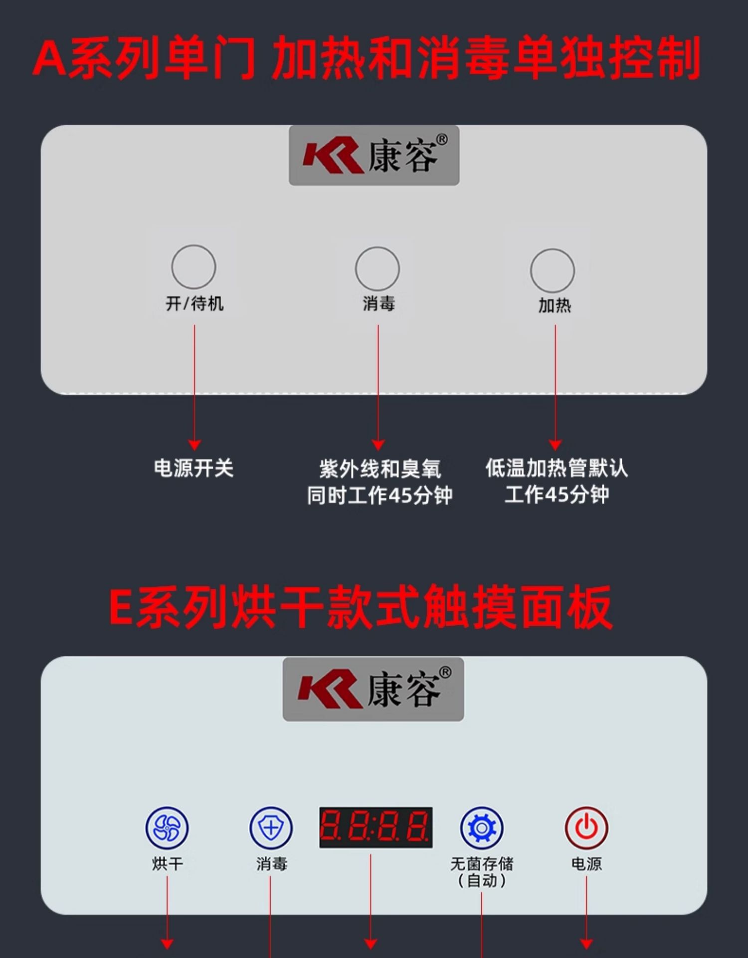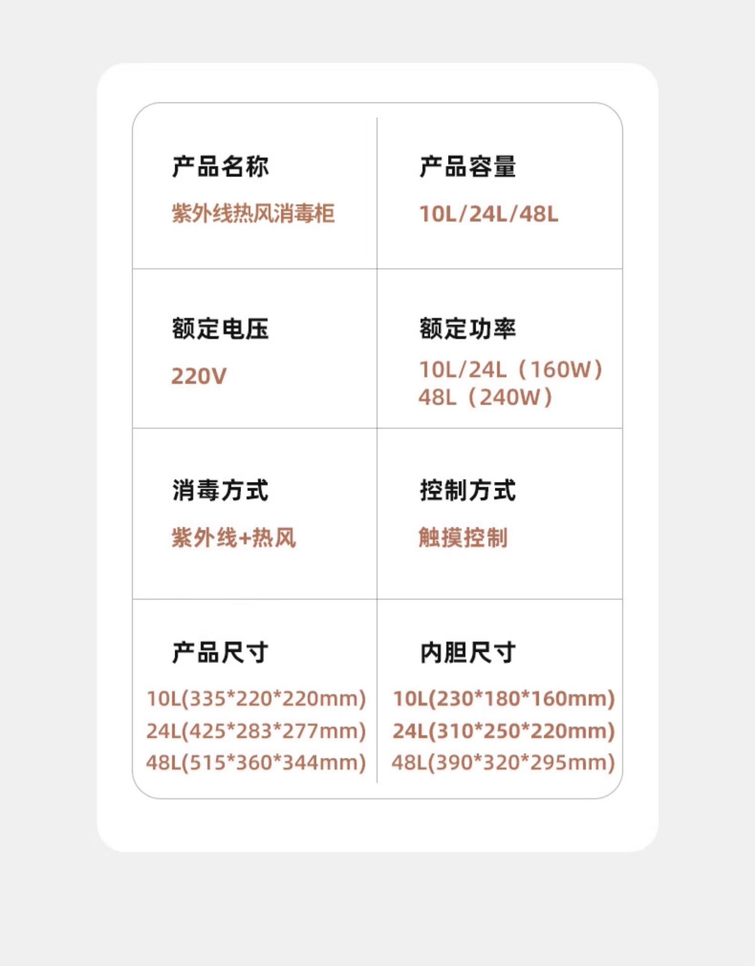 10L熱風循環+UV消毒、24L熱風循環+UV消毒、48L熱風循環+UV消毒、158E片扉熱風