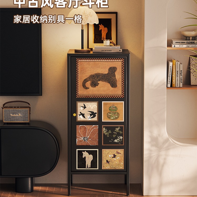 中古风客厅斗柜靠墙窄柜卧室床头置物柜玄关收纳柜沙发侧边储物柜