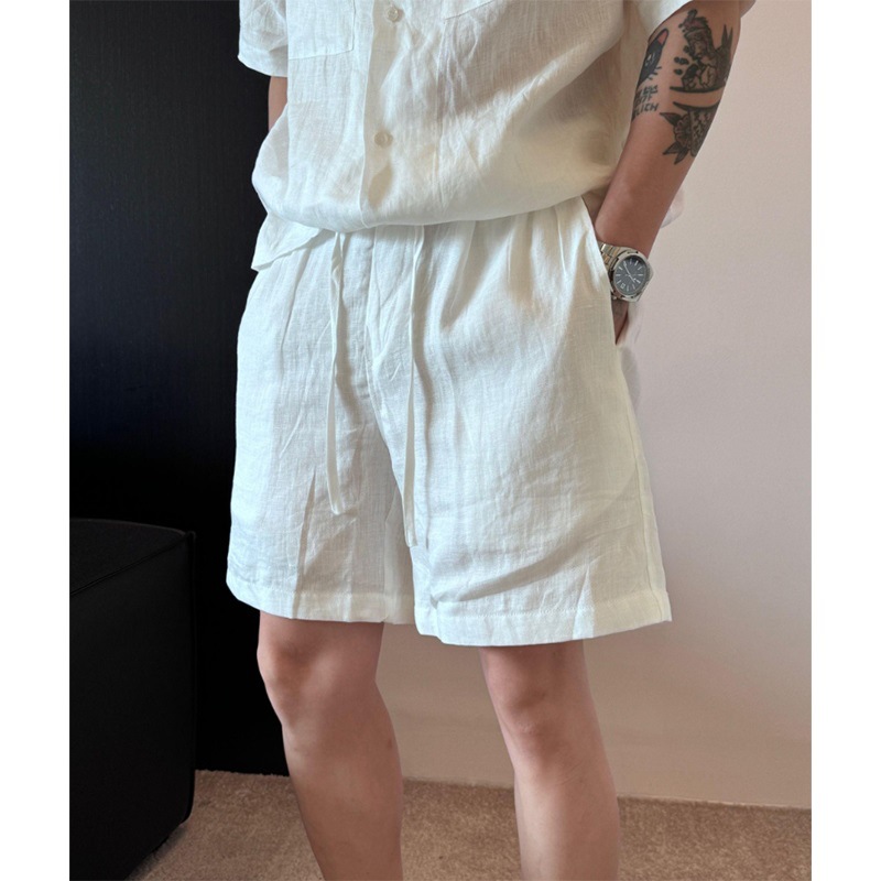 高端亚麻短裤男款夏季天丝麻料五分裤男士中裤外穿宽松休闲大裤衩