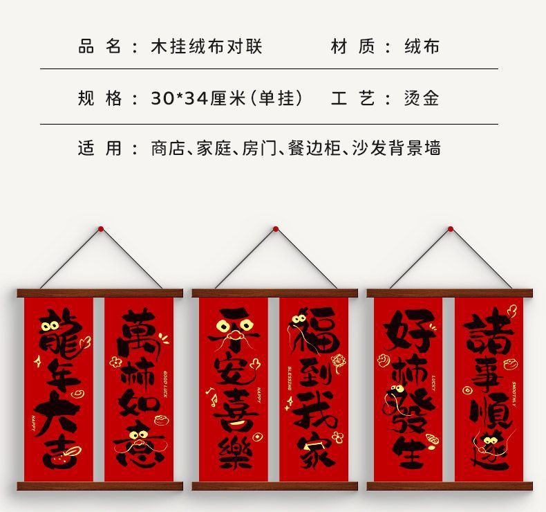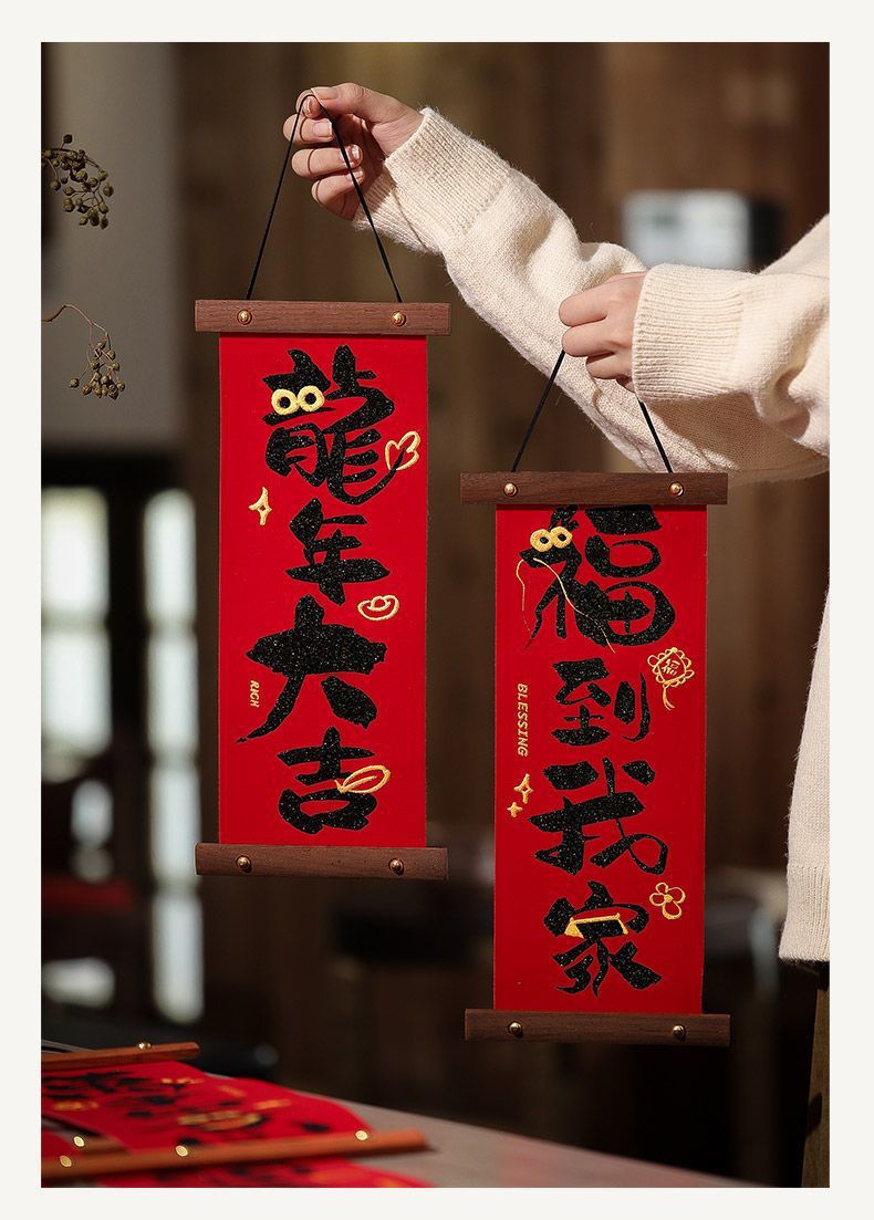 新年装飾中国風ペンダント秋祭り新年装飾アレンジメント 2024 新しい辰年ベルベット壁掛け