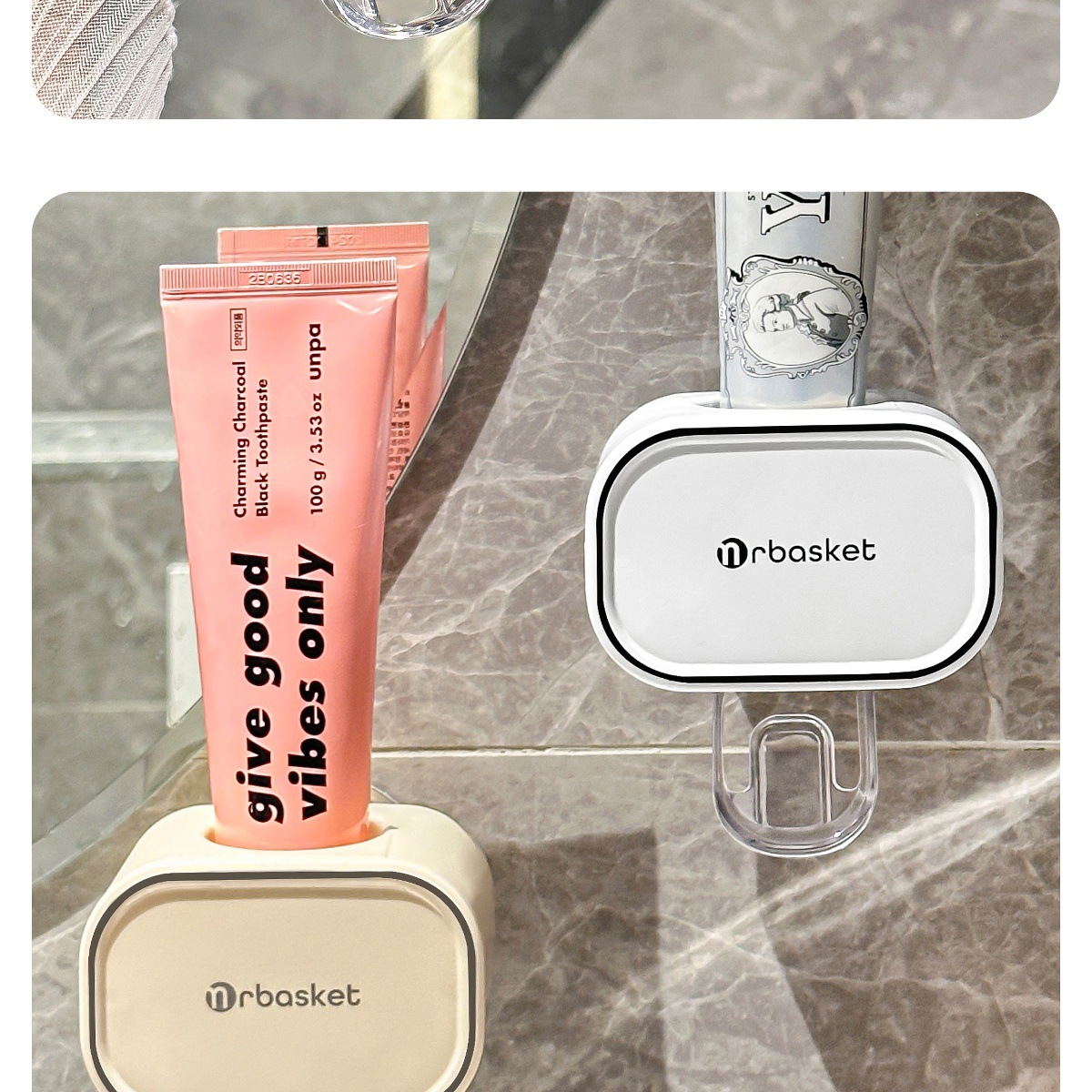 クリーム色の自動歯磨き粉絞り器,ガングレーの自動歯磨き粉絞り器,シンプルな白い自動歯磨き粉絞り器