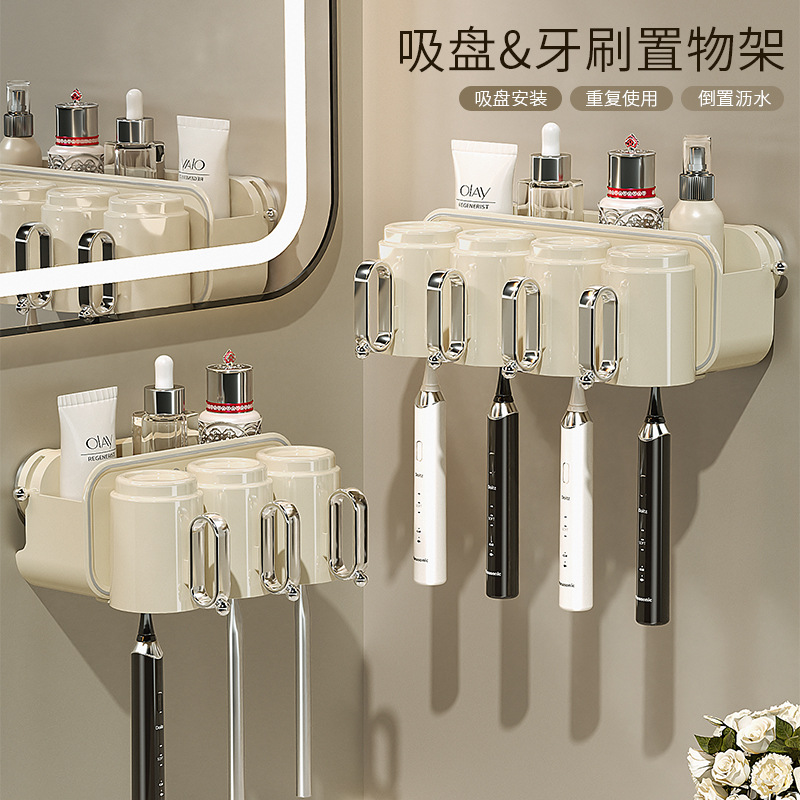 吸盤歯ブラシホルダー吸盤式壁掛け取っ手付き歯磨きコップトイレ歯コップ一体収納棚