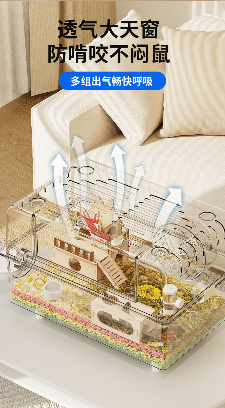ハムスターケージ透明豪華大空間別荘60アクリル大炉頂鶏飼育箱金糸熊用品