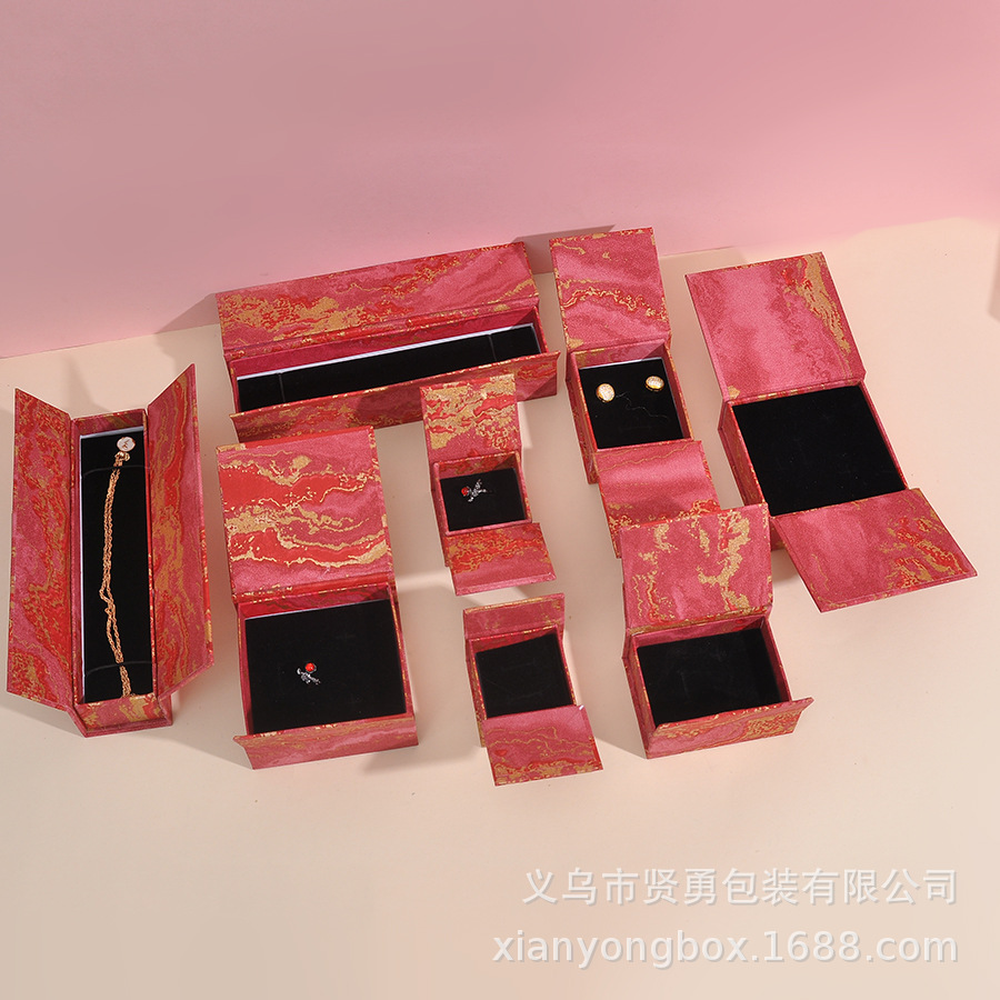 2025大红色圆角绒布盒戒指耳钉项链吊坠手镯收纳礼品盒套装首饰盒
