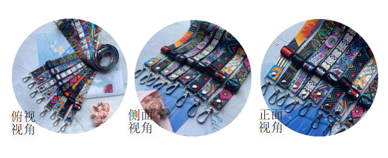クロスボディスタイル [ボヘミアン] レトロ柄ストラップ + 黒カードストリップ + ゴールドラウンドバックル + 小さなストラップ 2 本