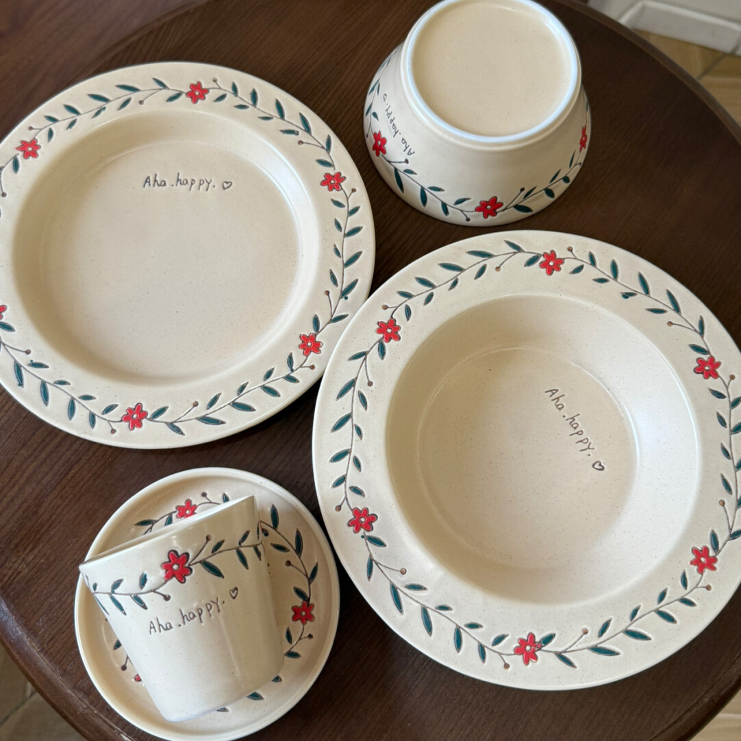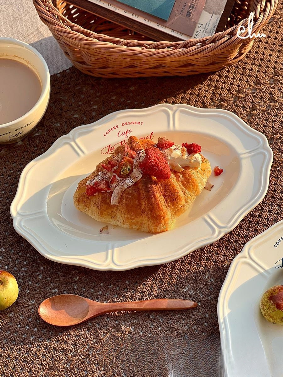 韓国のインスタで話題のレトロなフレンチクリーム色のデザートプレート、丸皿、花柄プレート、セラミック楕円形プレート、コーヒーカップ