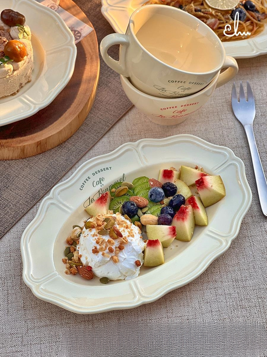 韓国ins風レトロフランス語セラミッククリーム色洋食パスタデザートケーキ皿楕円皿コーヒーカップ