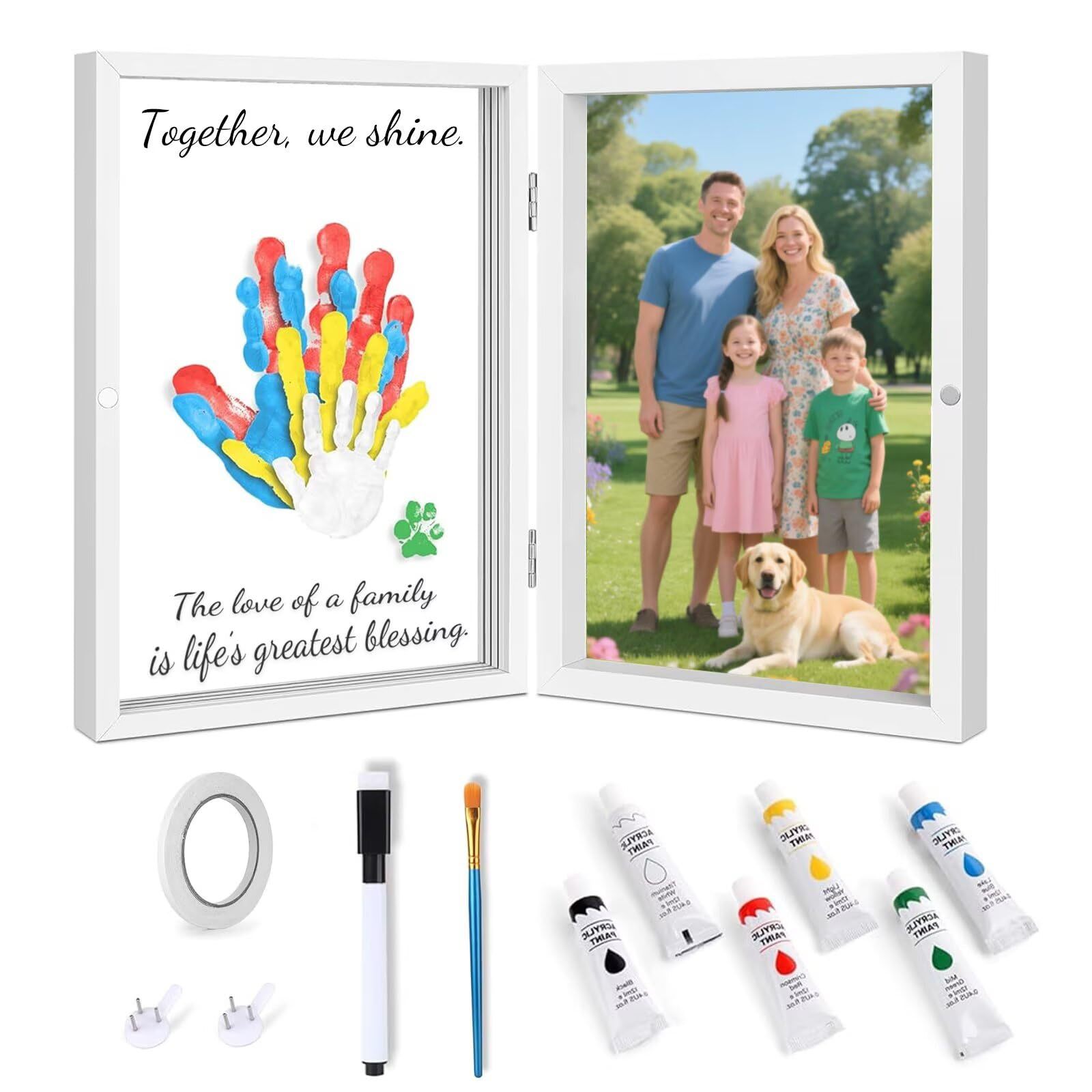 跨境家用木质手工DIY丙烯颜料4槽磁吸合页款双框家庭手印纪念套装
