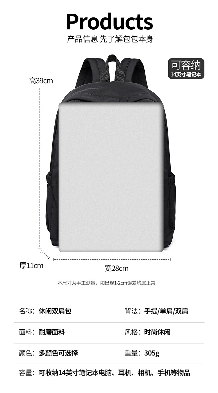 跨境时尚简约女双肩包高级感轻便休闲旅行男士背包大容量学生书包