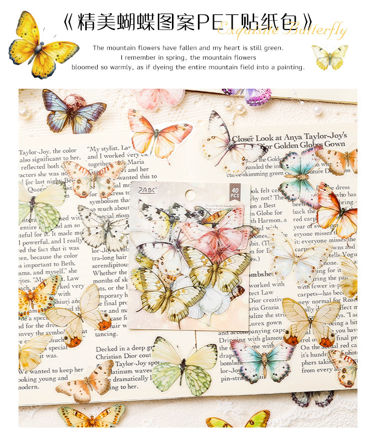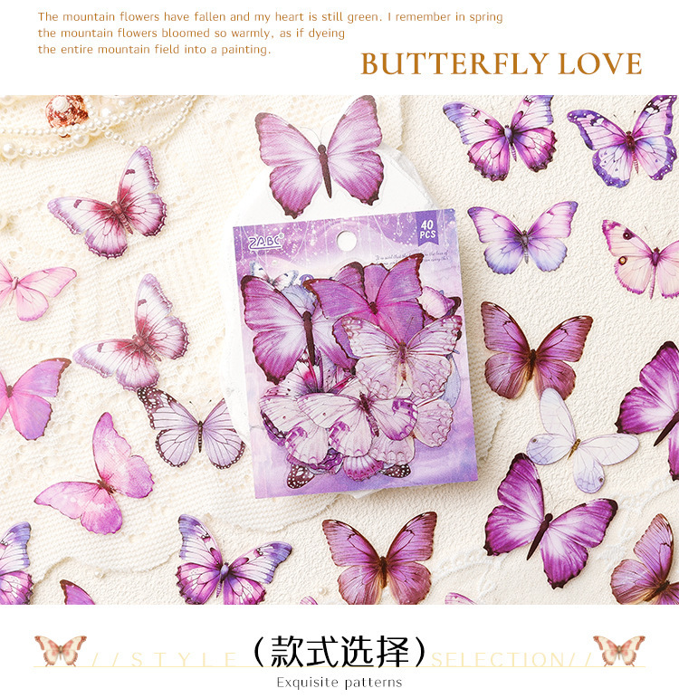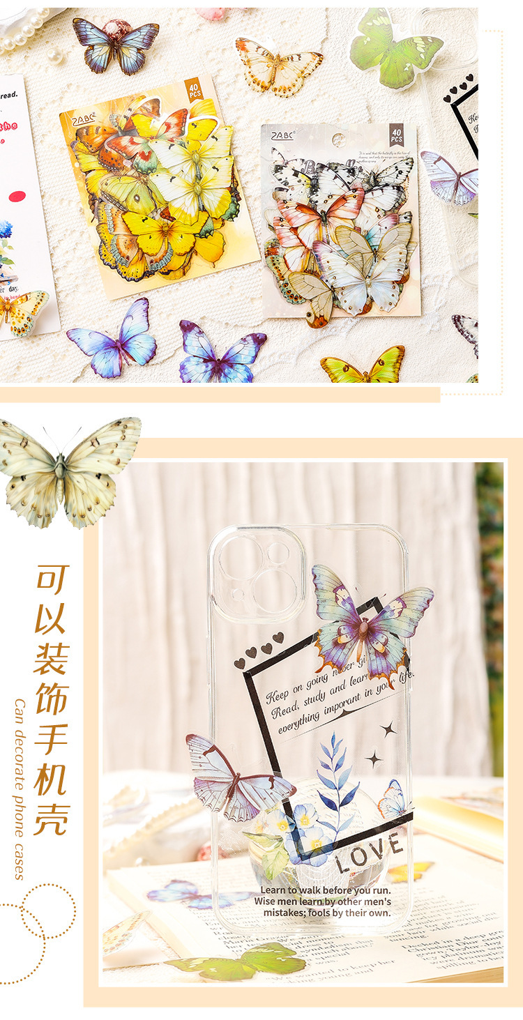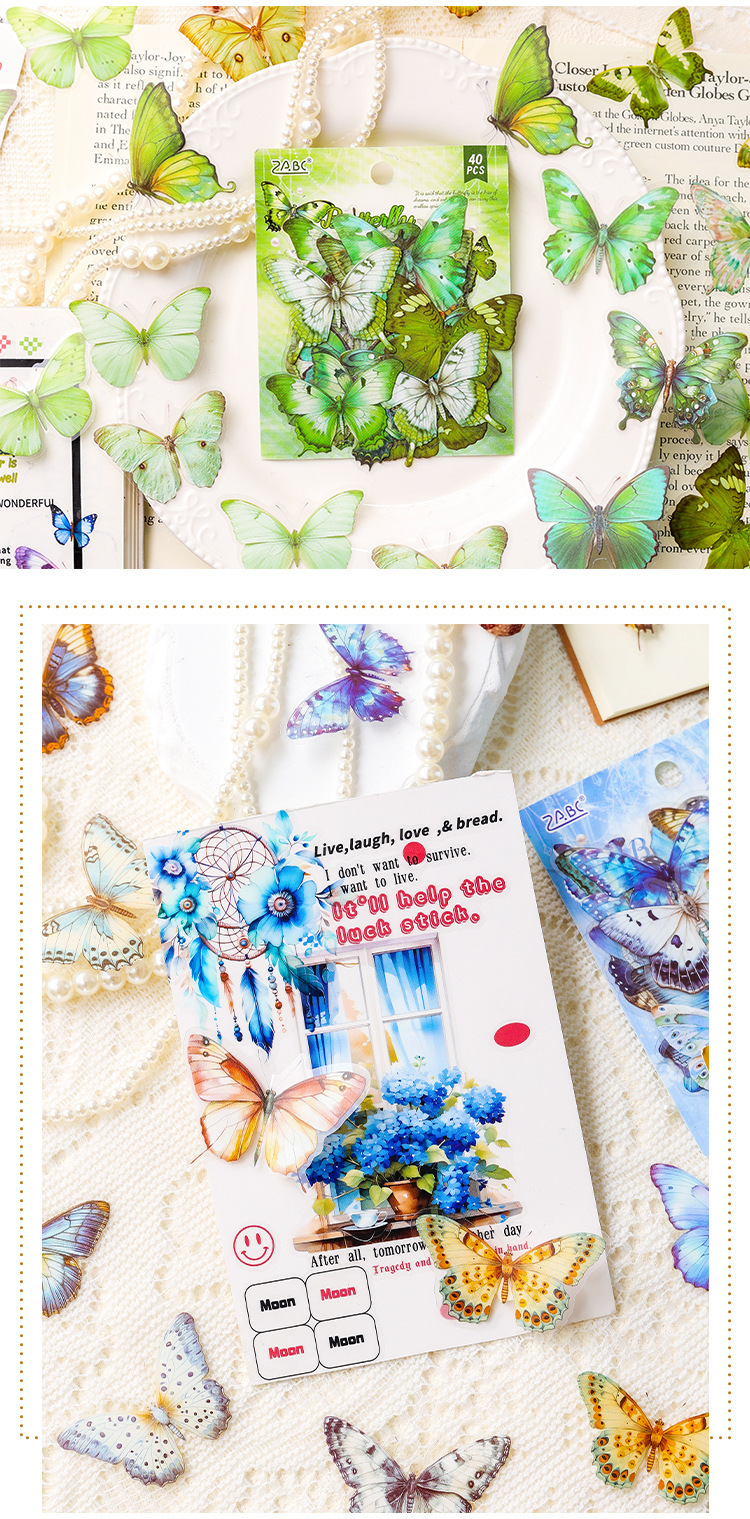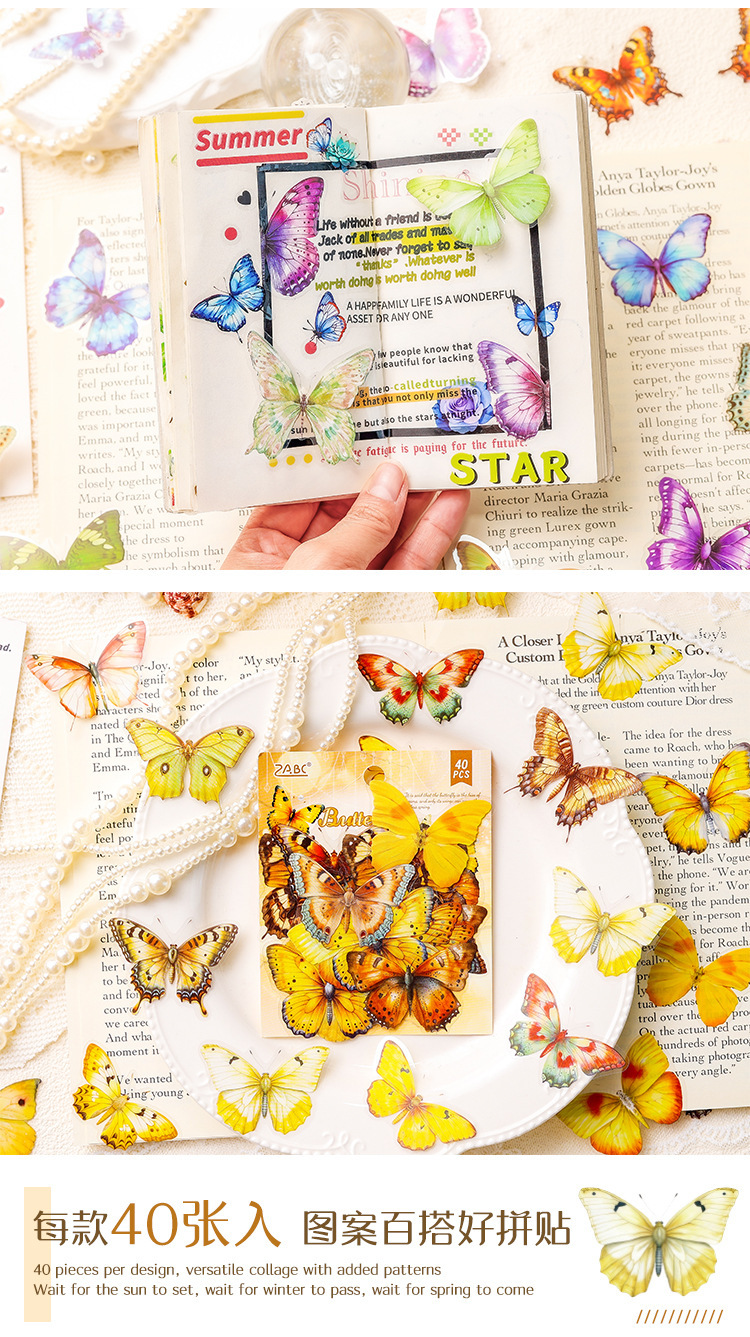 ZABC ステッカーパック 春の蝶シリーズ 蝶をテーマにしたハンドブック装飾素材ステッカー 6種類から40枚入り